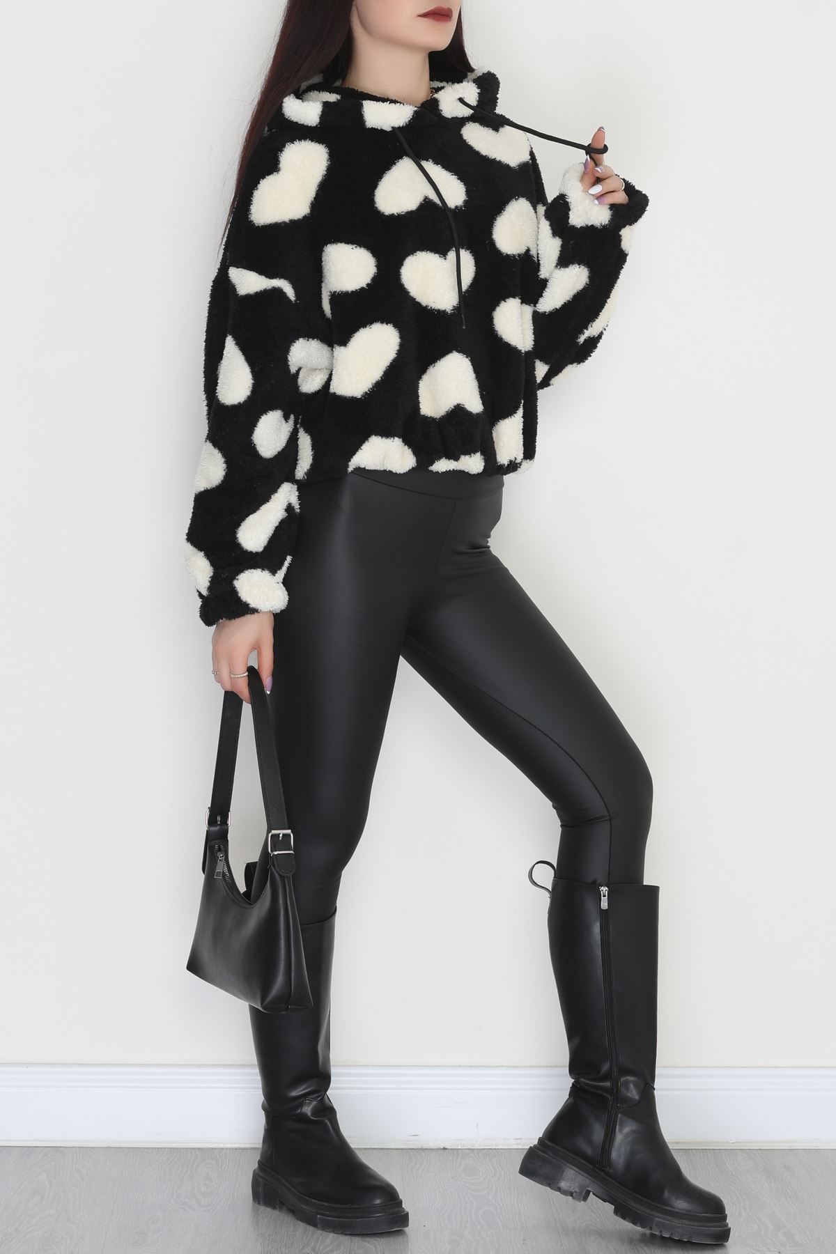 Welsoft Kumaş Kalpli Kapşonlu Crop Sweat Siyahbeyaz - 31607.308.