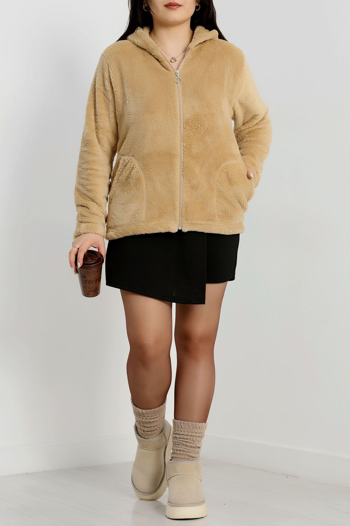 Welsoft Kumaş Kapşonlu Battal Ceket Camel - 70749.107.