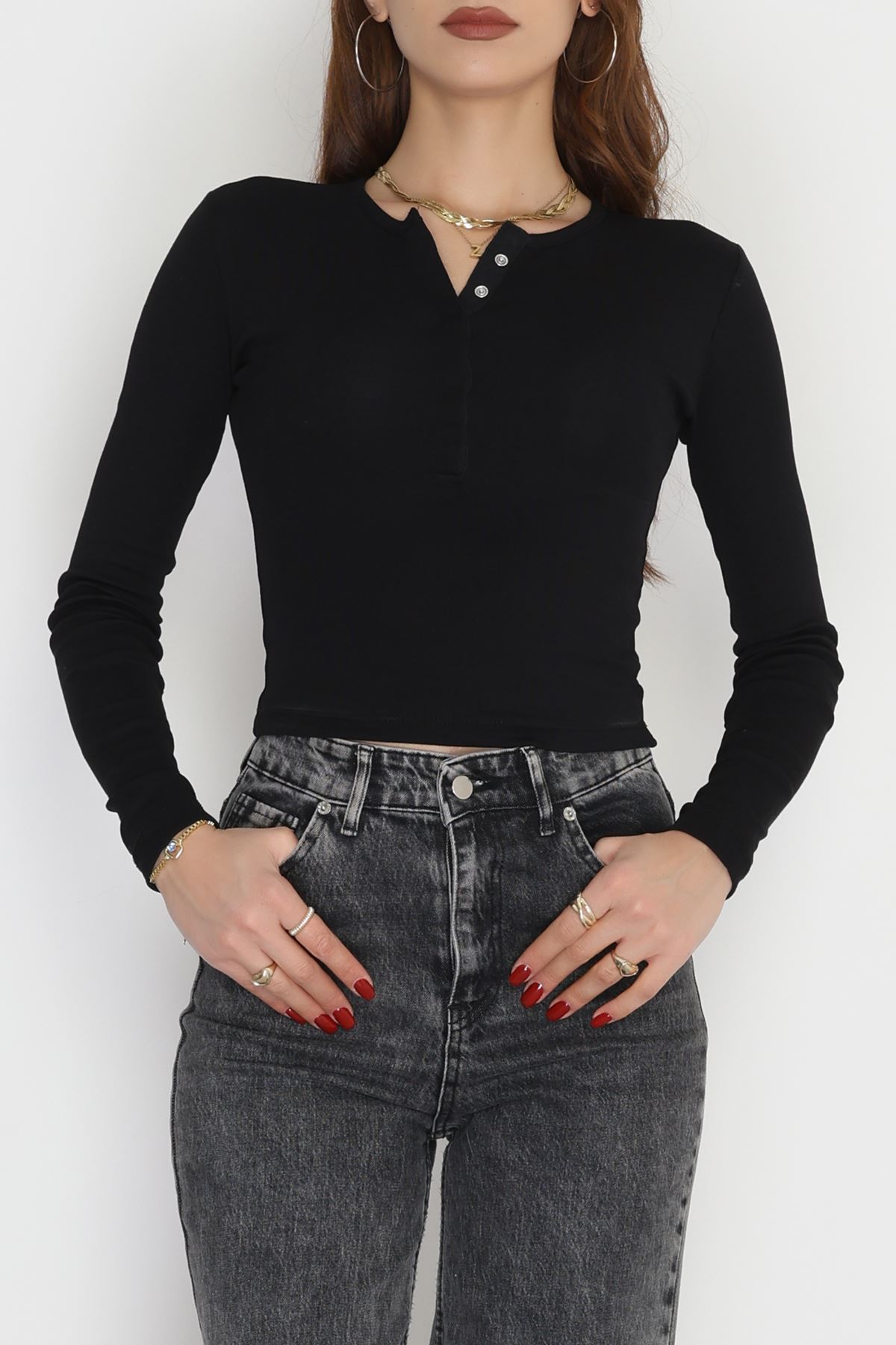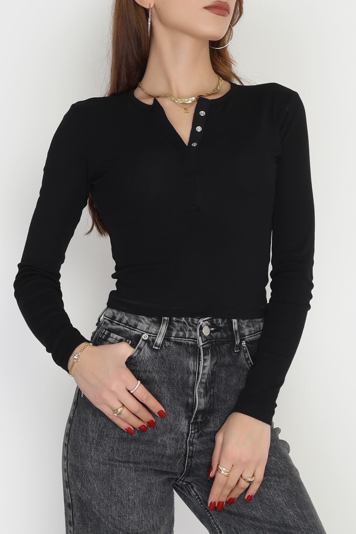 Yaka Çıtçıtlı Ribana Likralı Body Siyah - 21947.200.