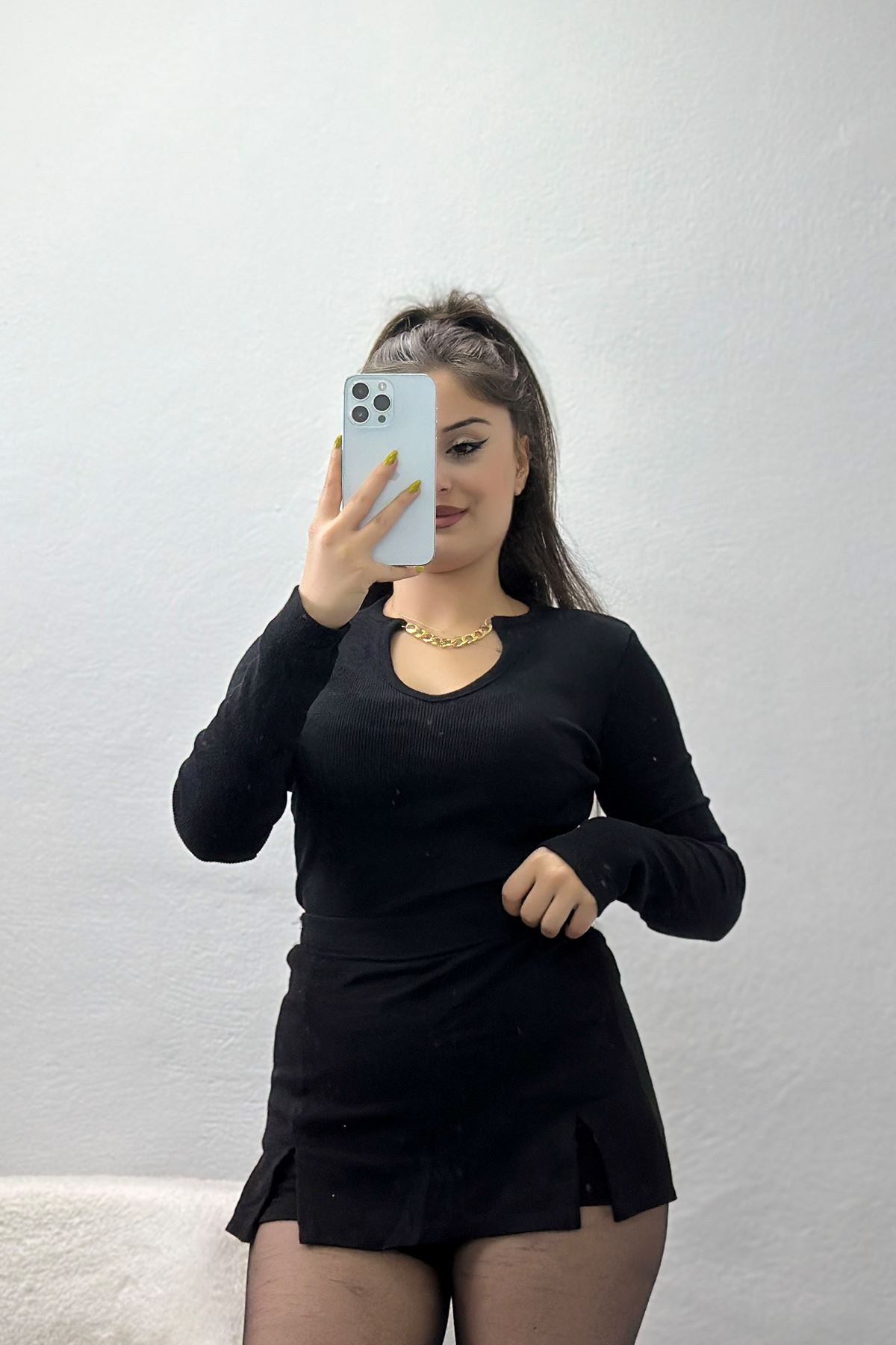 Yaka Zincir Detaylı Kaşkorse Body Siyah - 70685.599.