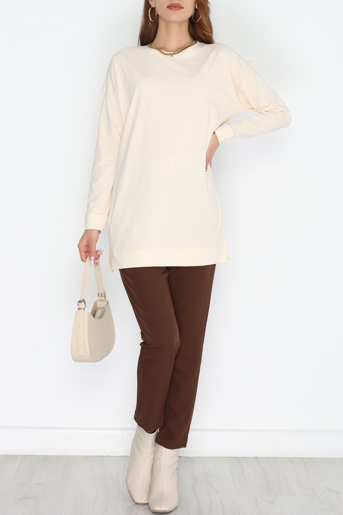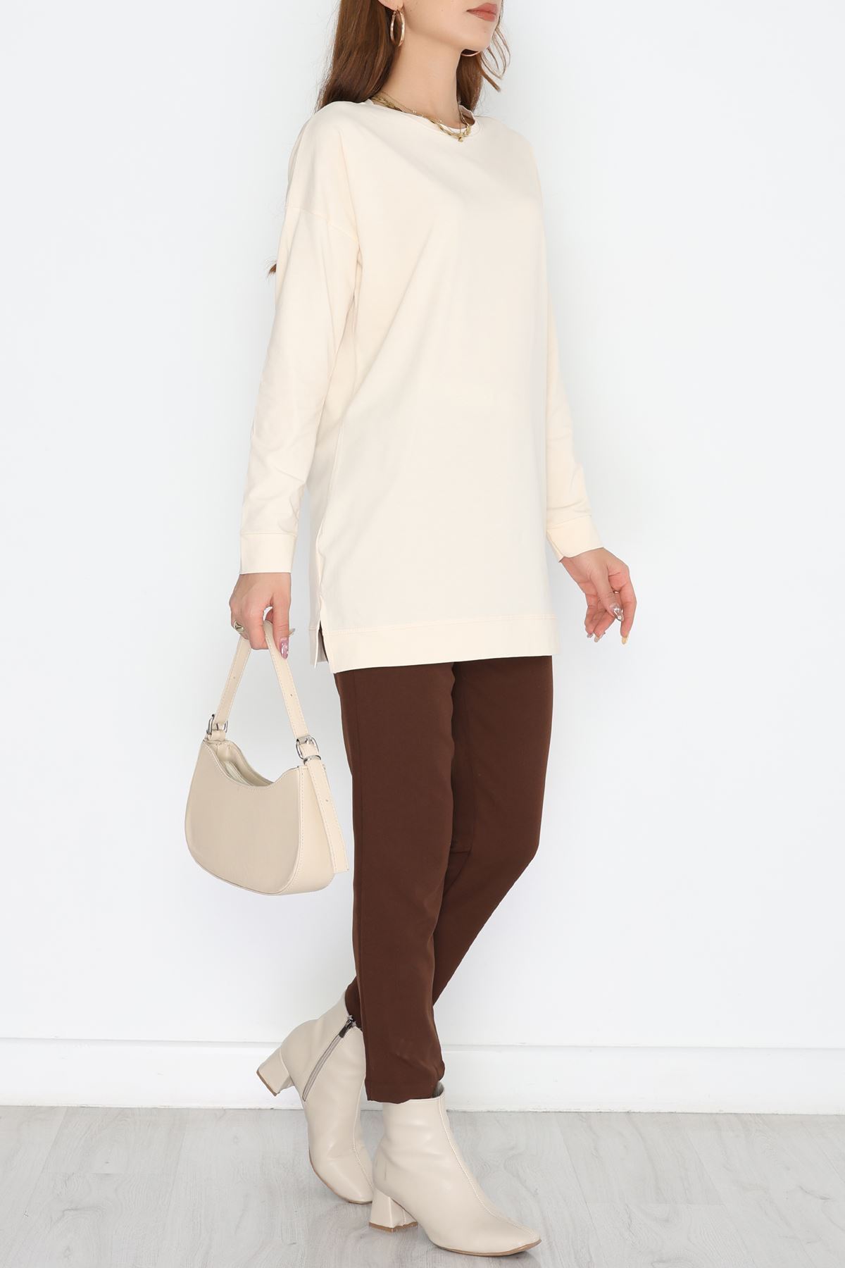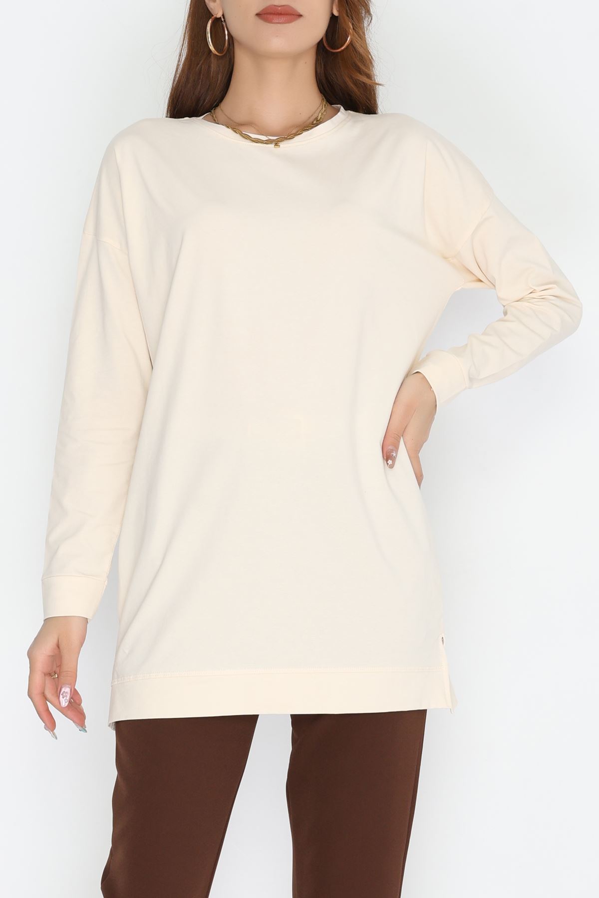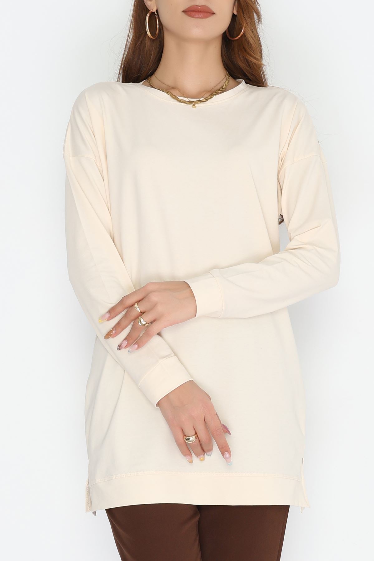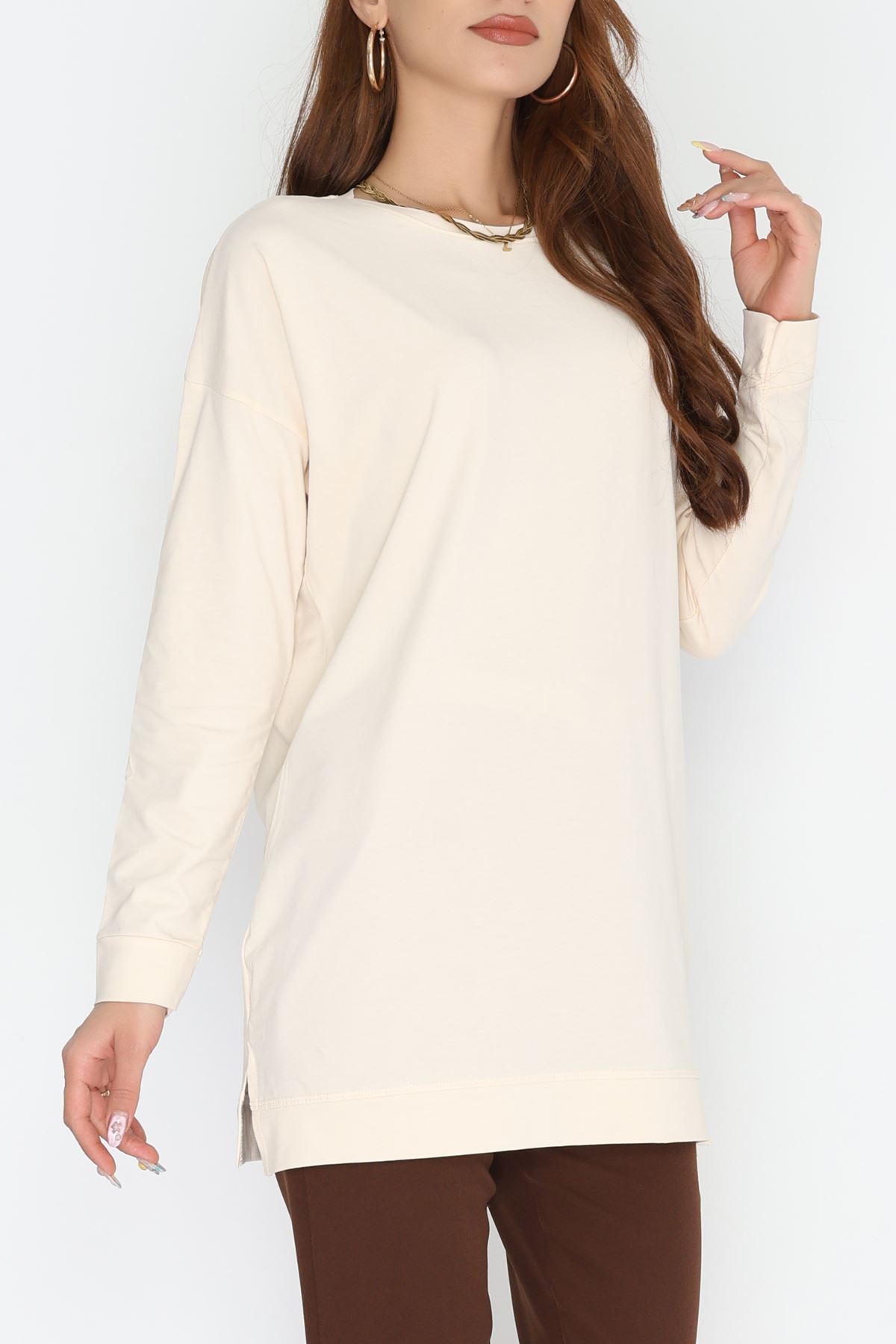 Yanı Yırtmaç Detaylı Kompak Likralı Tunik Açıkbej - 90933.1878.