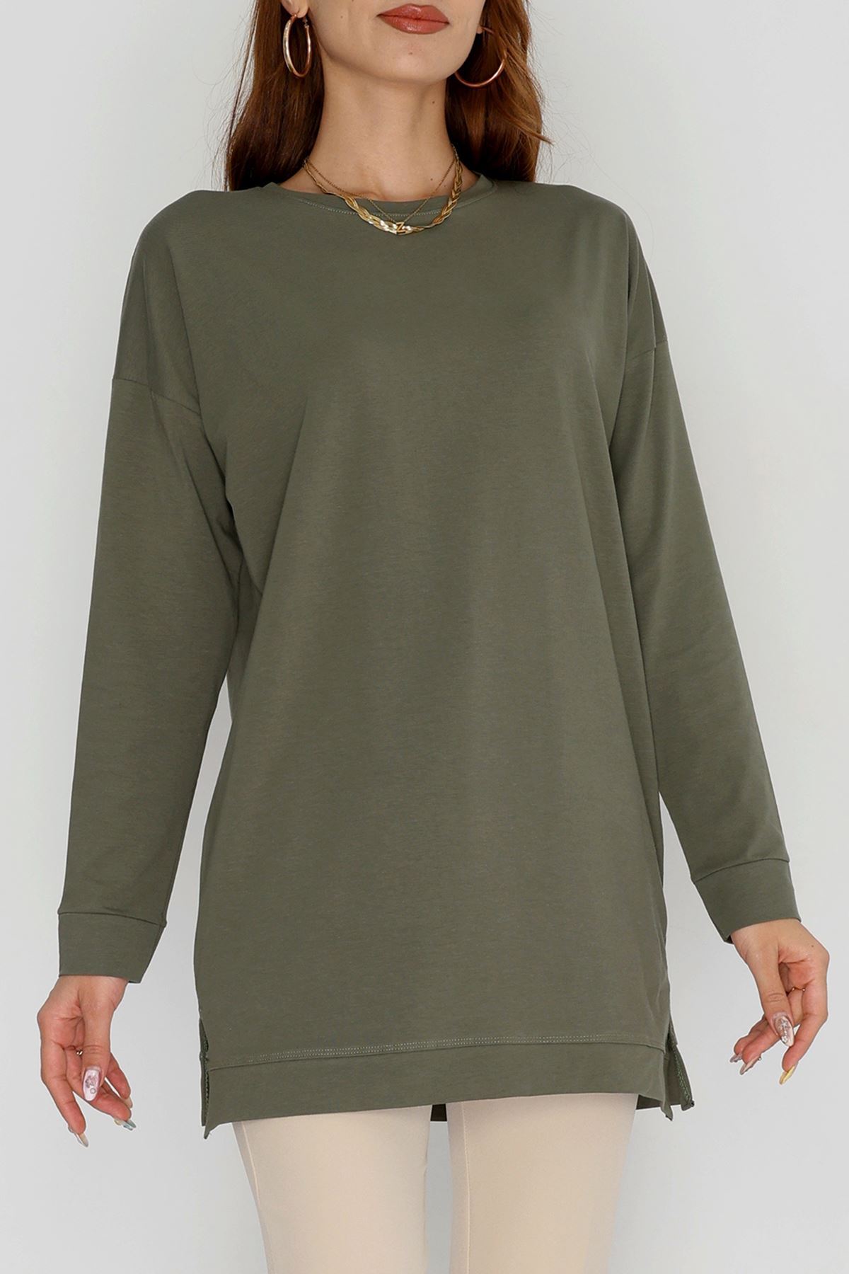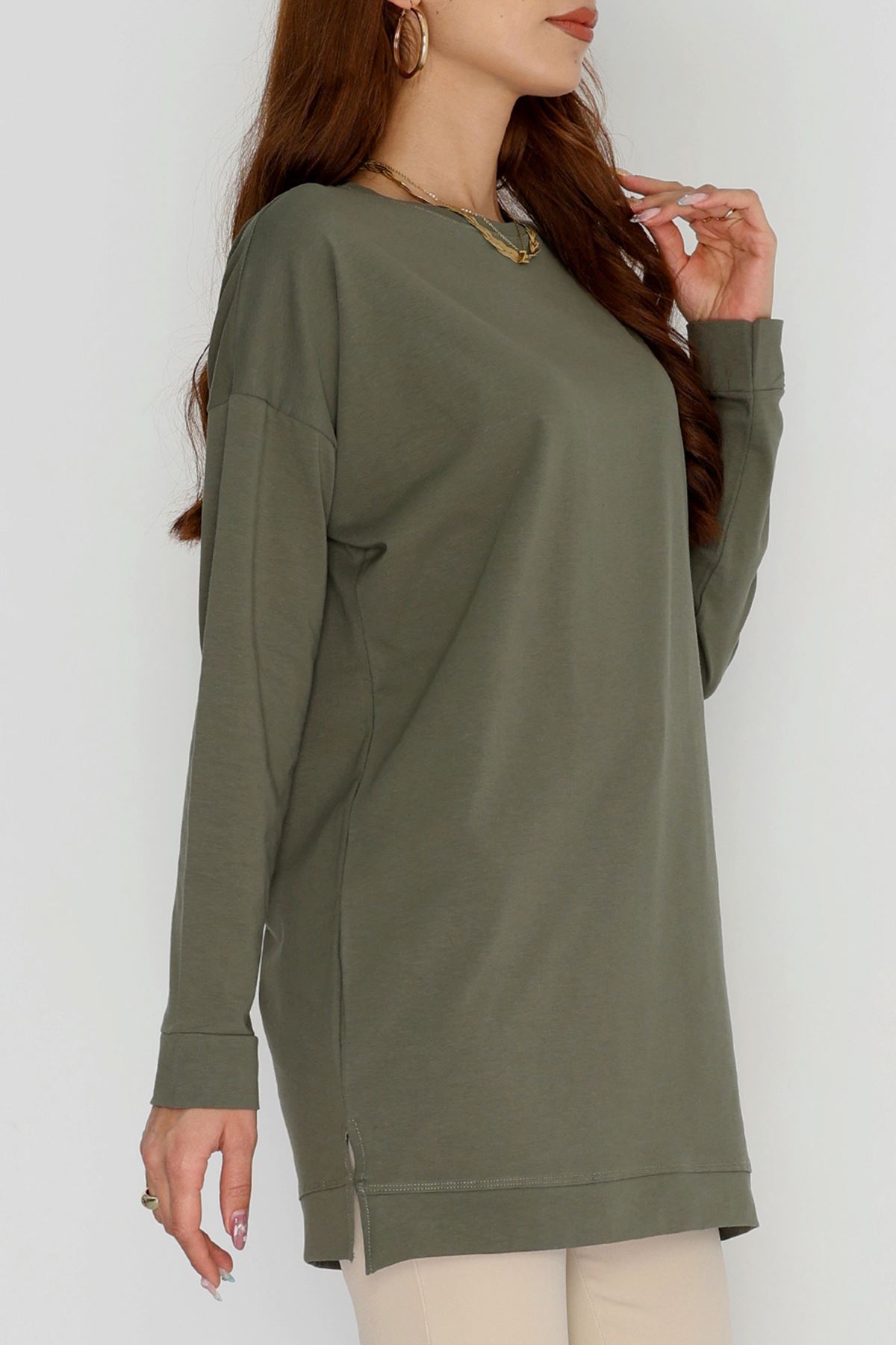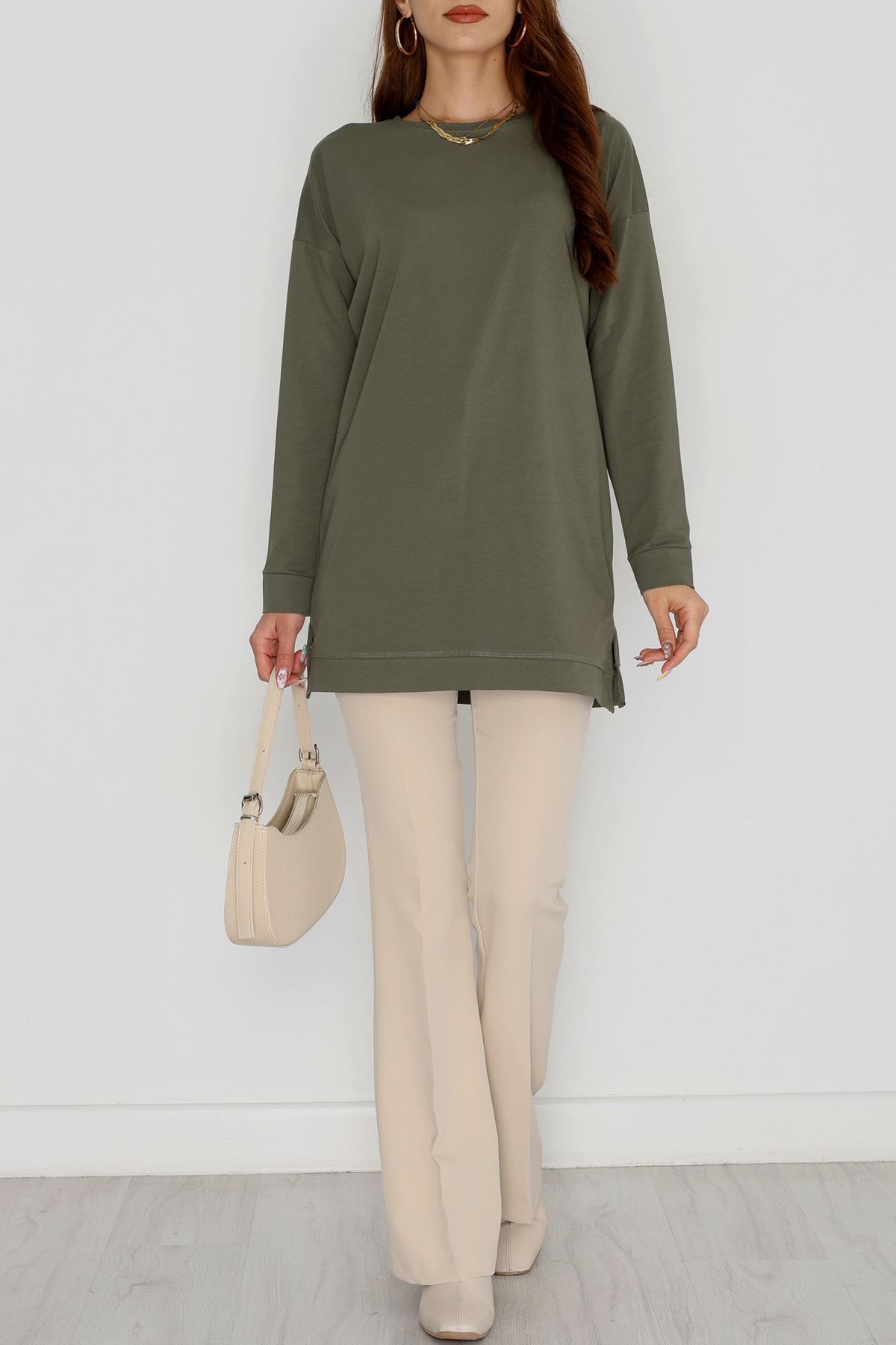 Yanı Yırtmaç Detaylı Kompak Likralı Tunik Haki - 90933.1878.