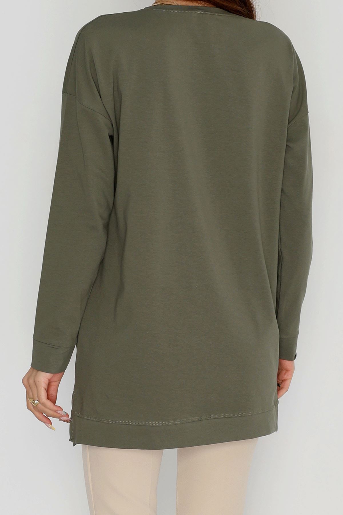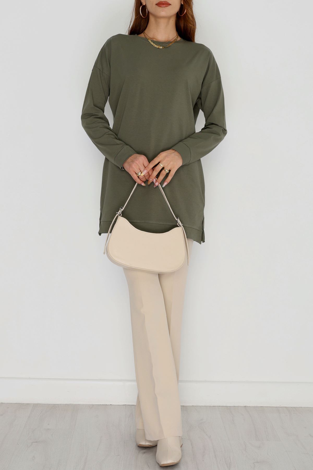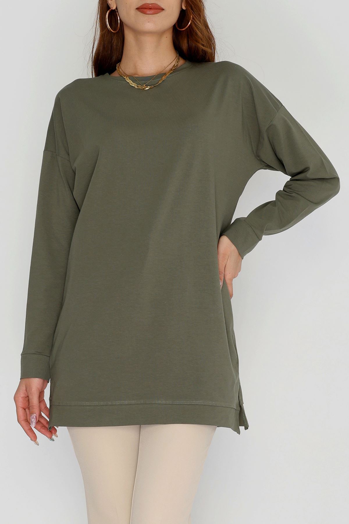 Yanı Yırtmaç Detaylı Kompak Likralı Tunik Haki - 90933.1878.