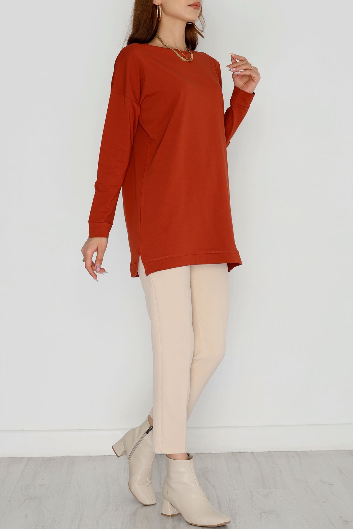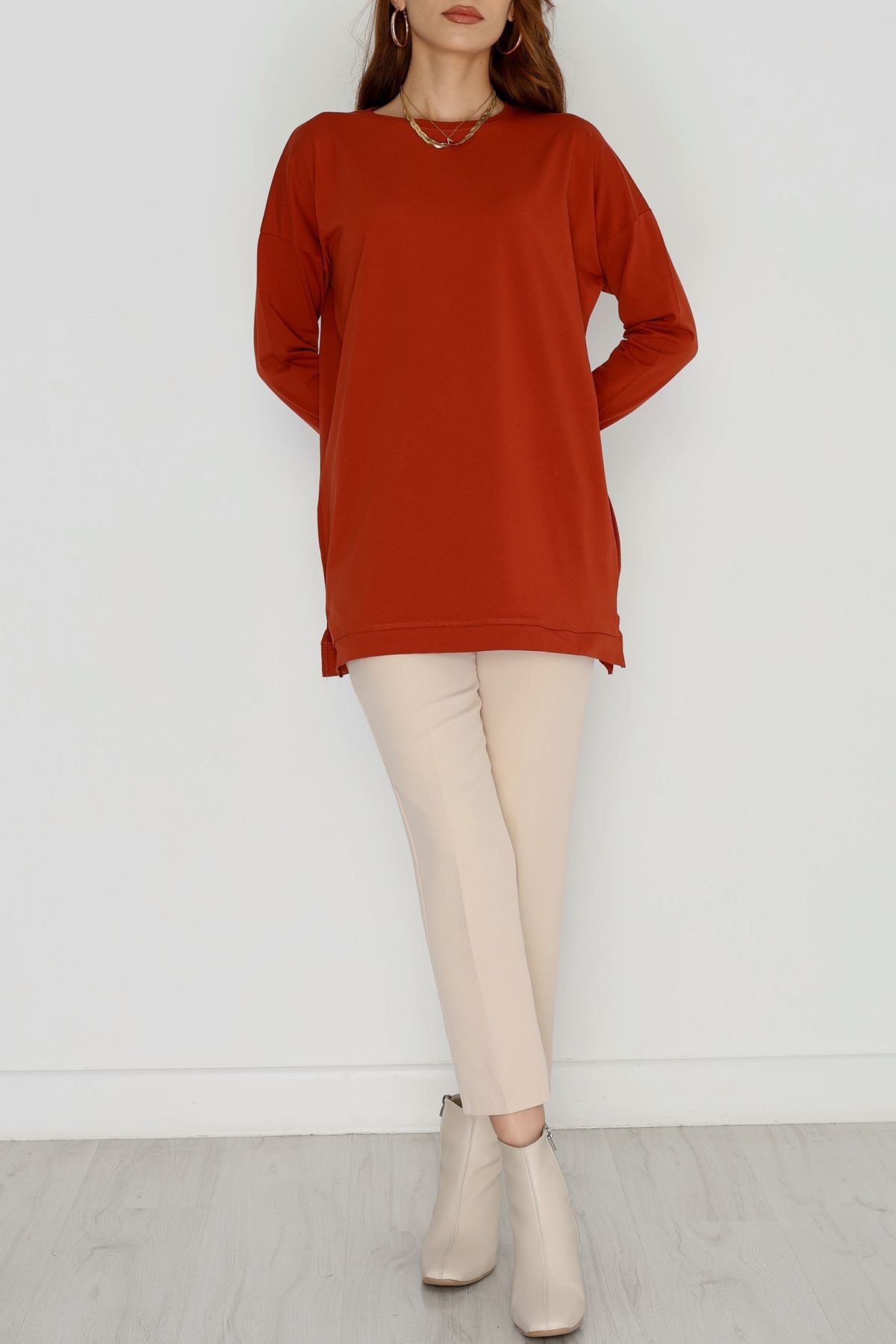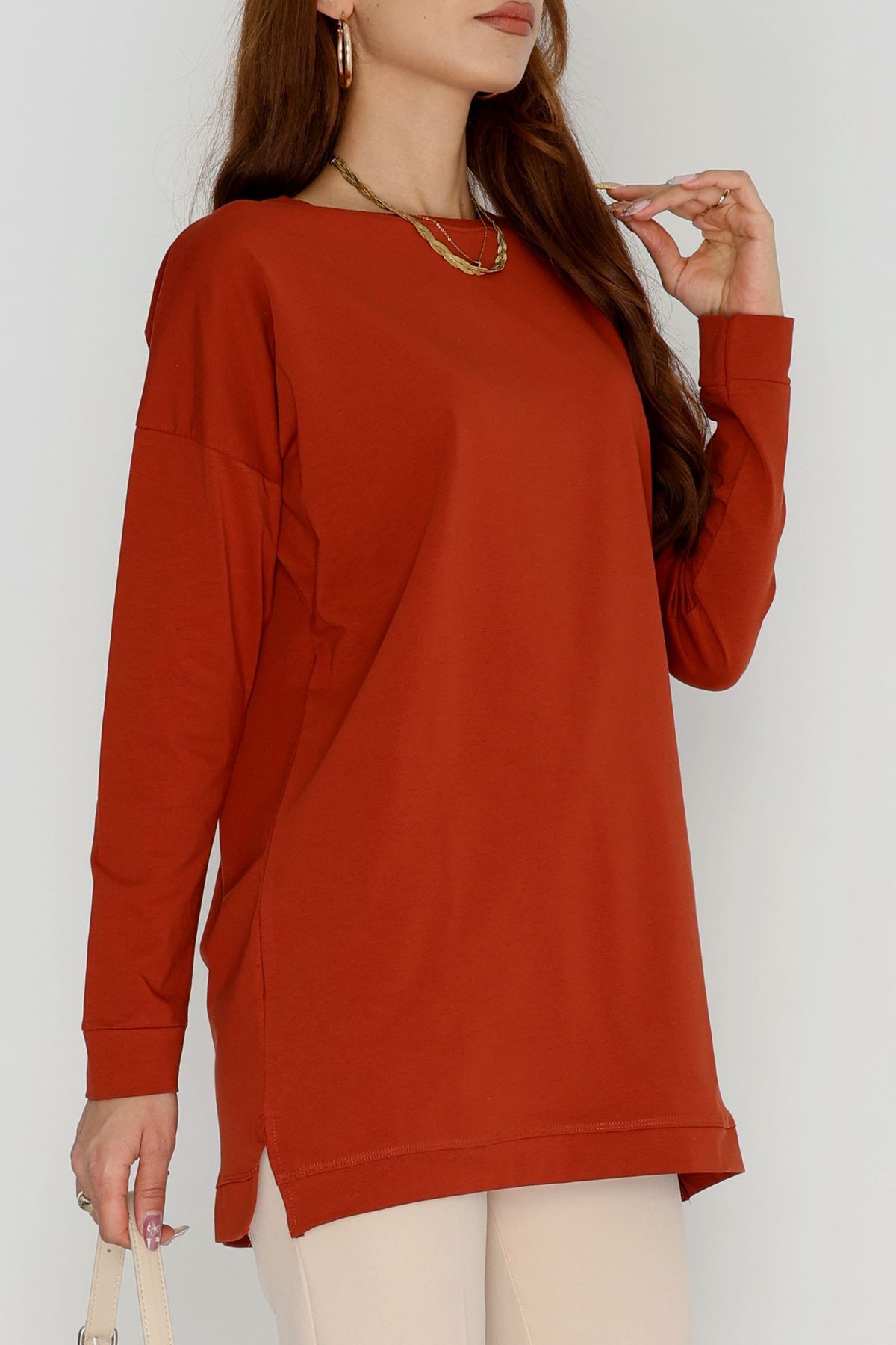 Yanı Yırtmaç Detaylı Kompak Likralı Tunik Kiremit - 90933.1878.