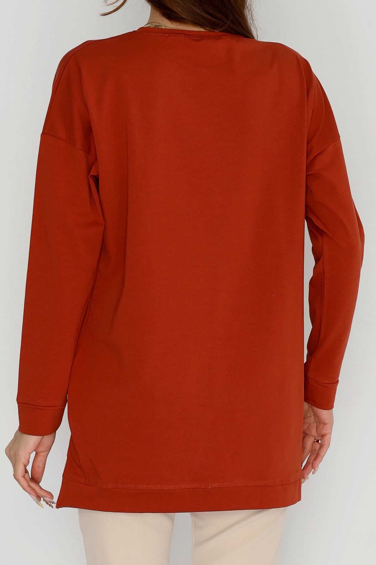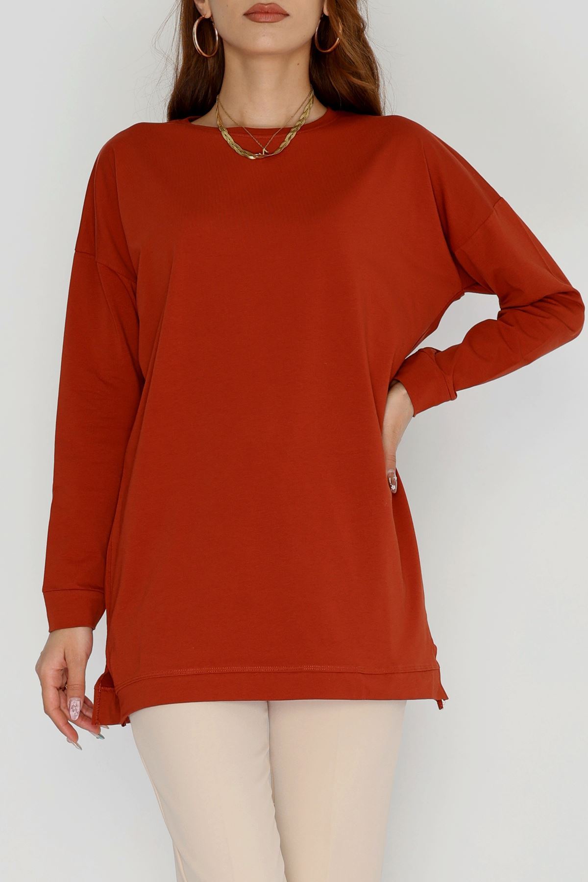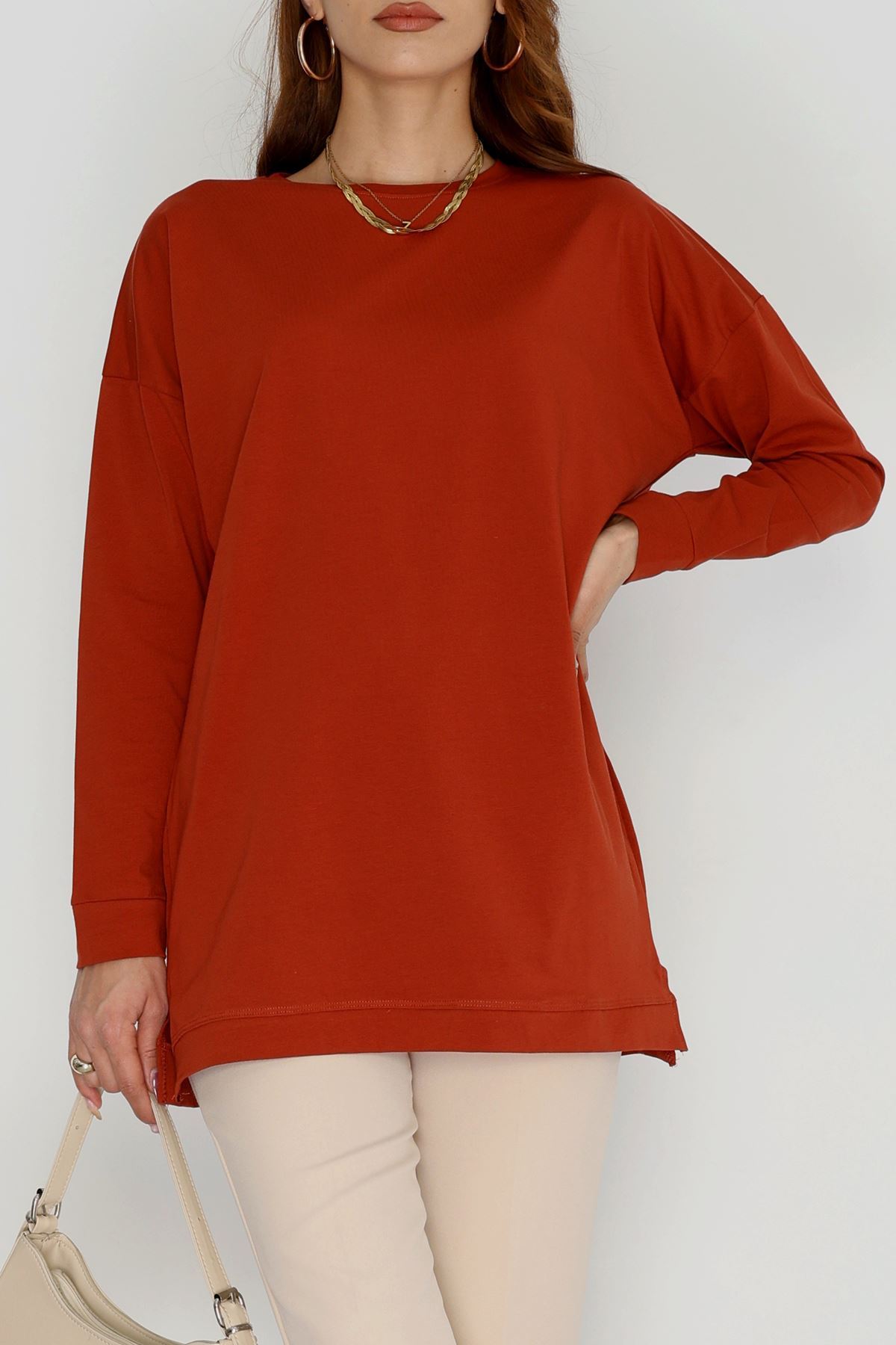 Yanı Yırtmaç Detaylı Kompak Likralı Tunik Kiremit - 90933.1878.