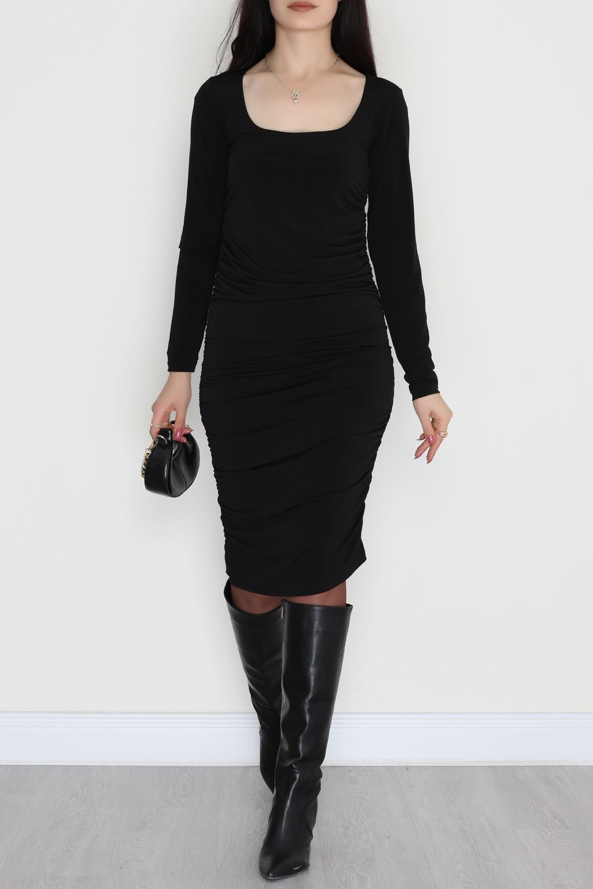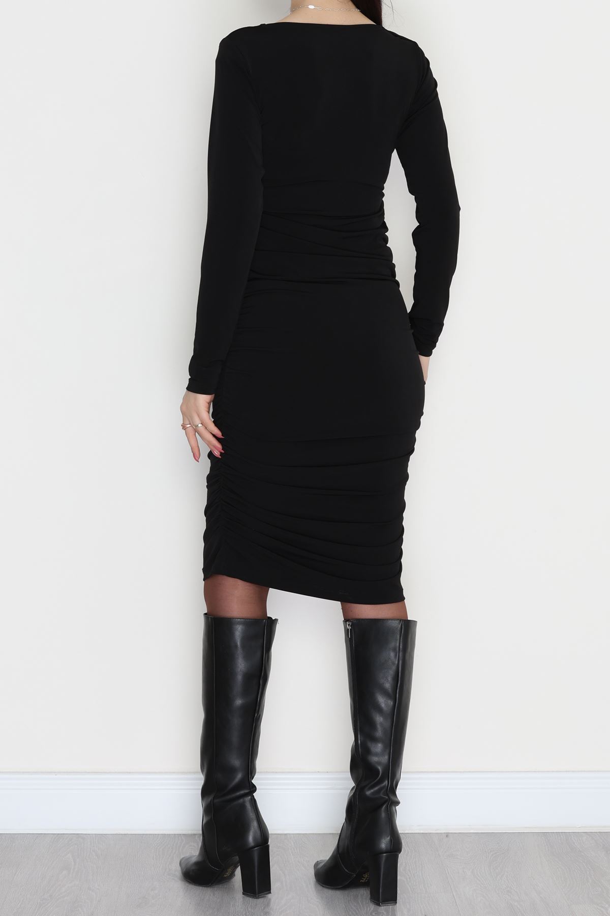 Yanları Büzgülü Sandy Elbise Siyah - 42569.1949.