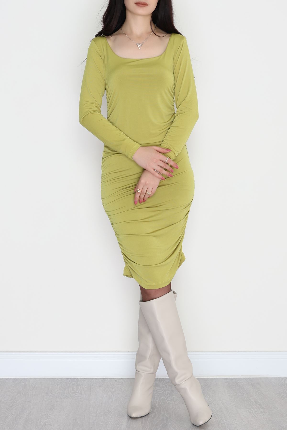 Yanları Büzgülü Sandy Elbise Yağyeşili - 42569.1949.