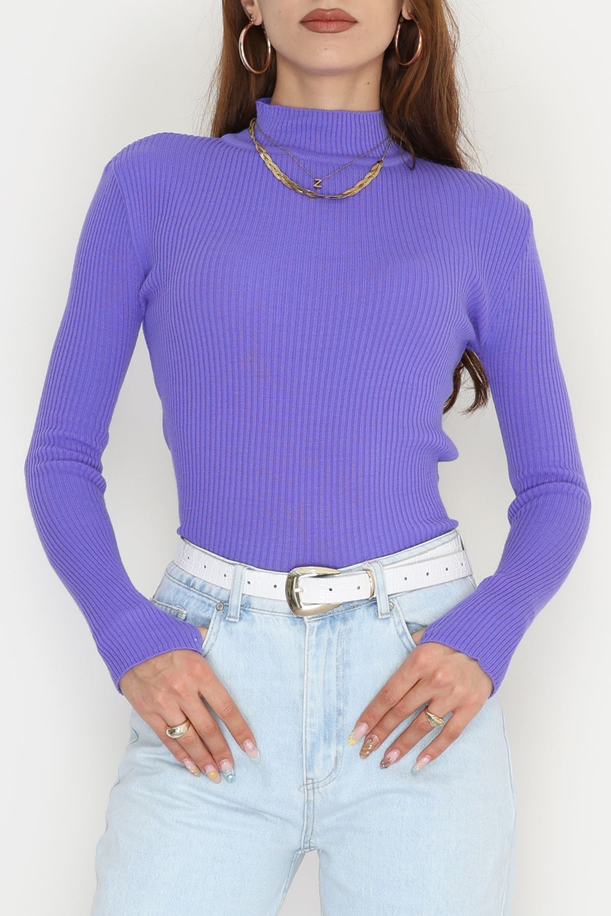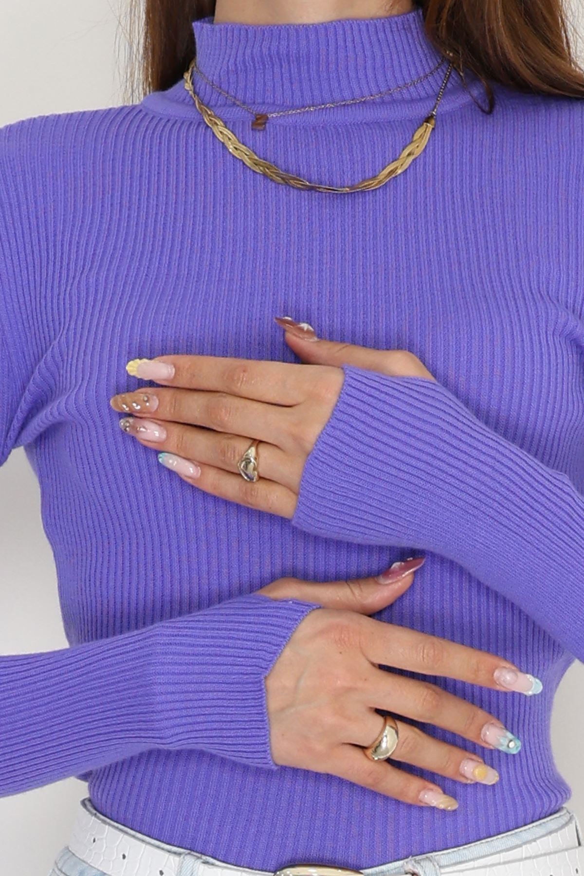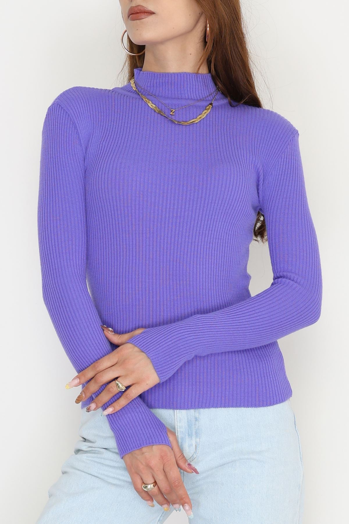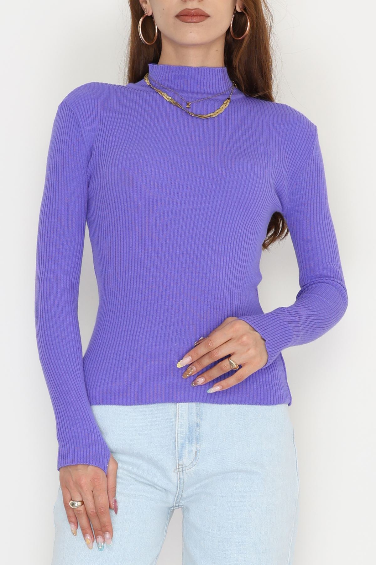 Yarım Balıkçı Parmak Geçmeli Triko Açıkmor - 42030.2052.