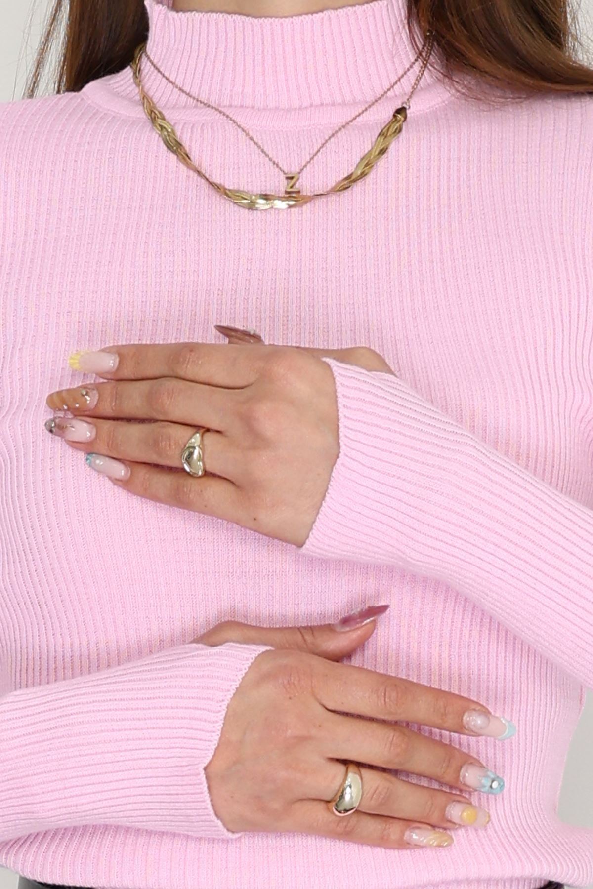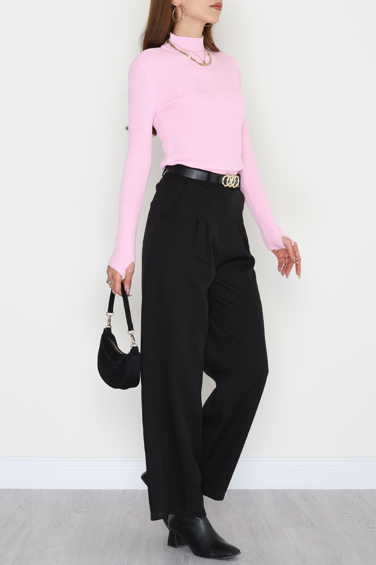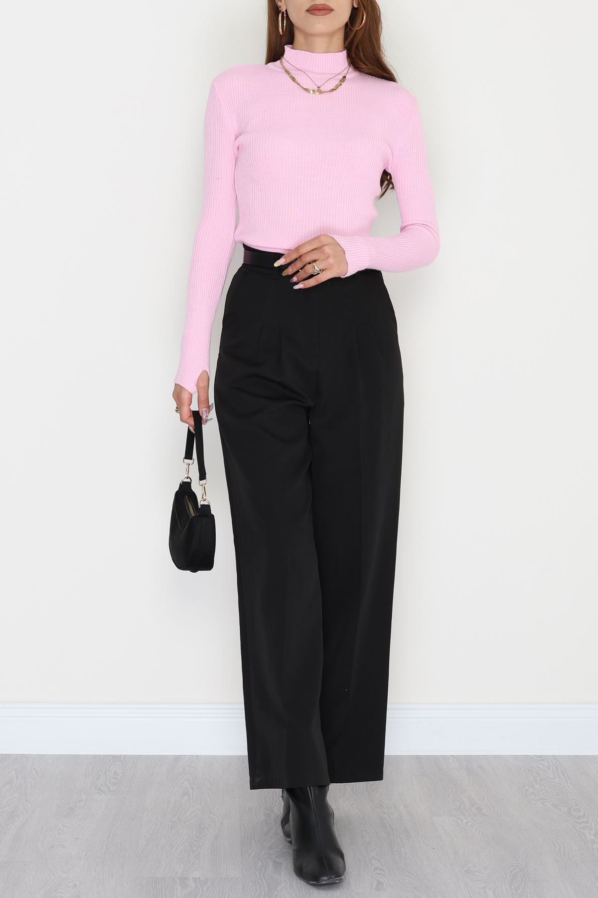 Yarım Balıkçı Parmak Geçmeli Triko Pembe - 42030.2052.