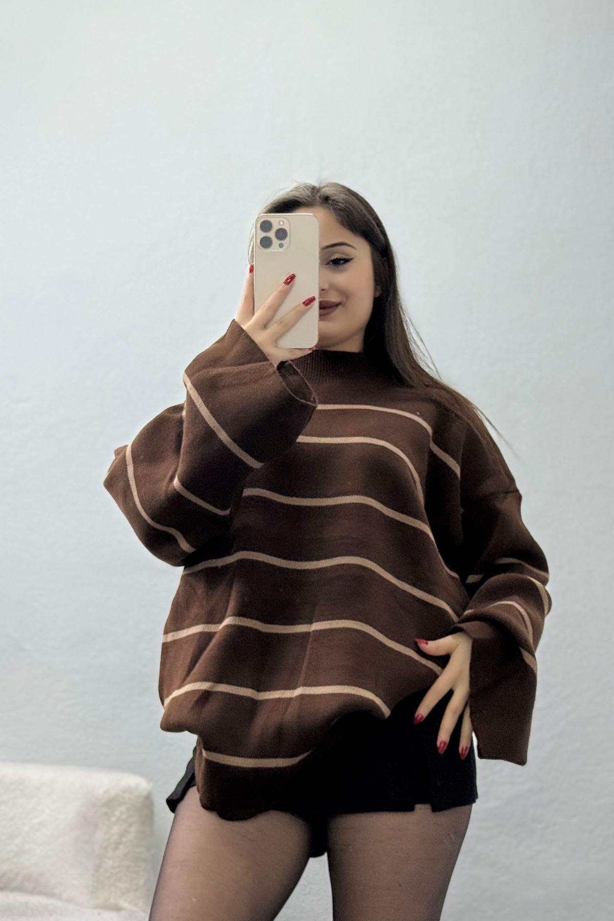 Çizgili Polo Yaka Triko Kahve - 70870.1765.