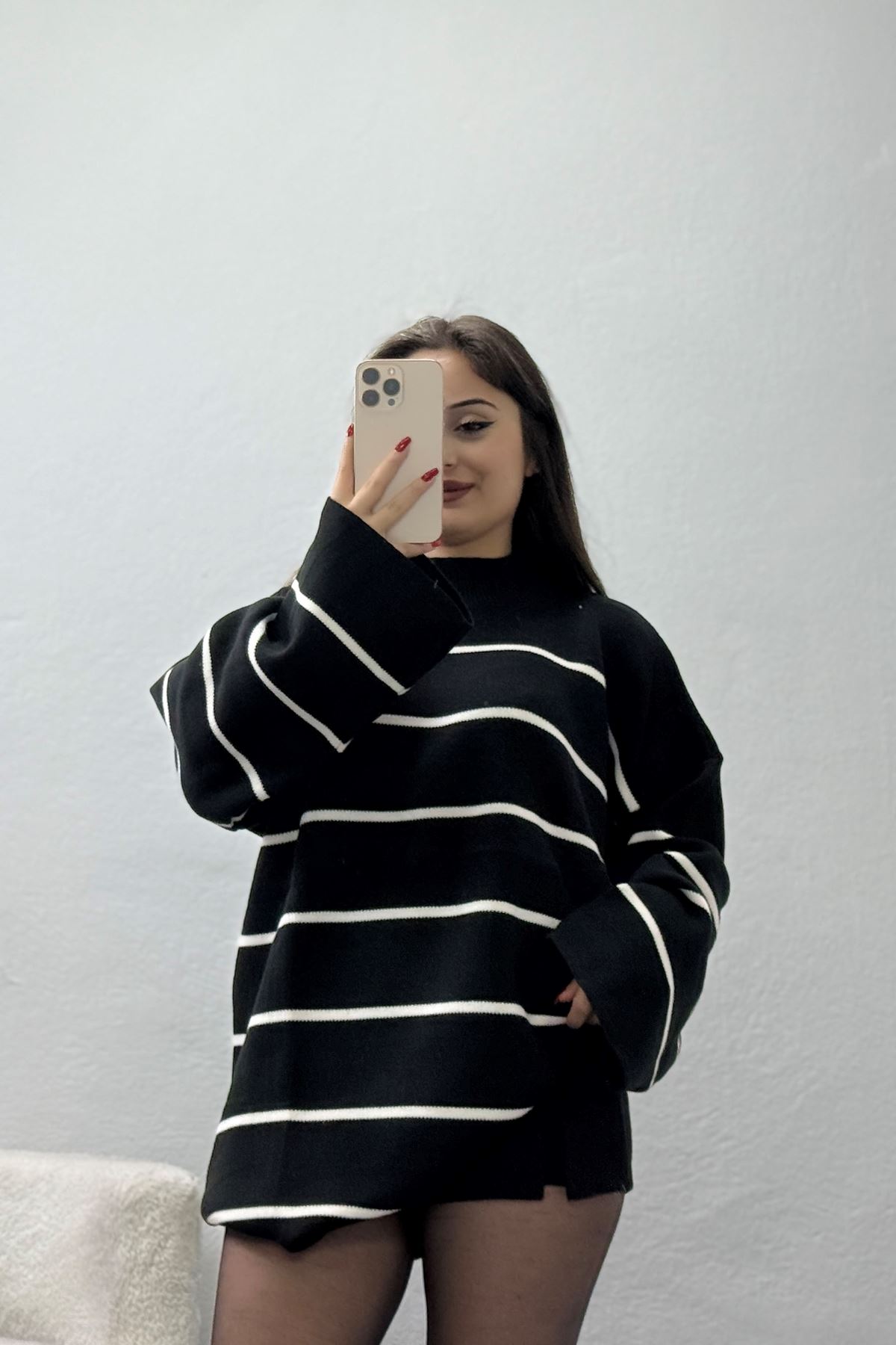 Yarım Balıkçı Yaka Triko Bluz Siyahlatte - 3066.1577.