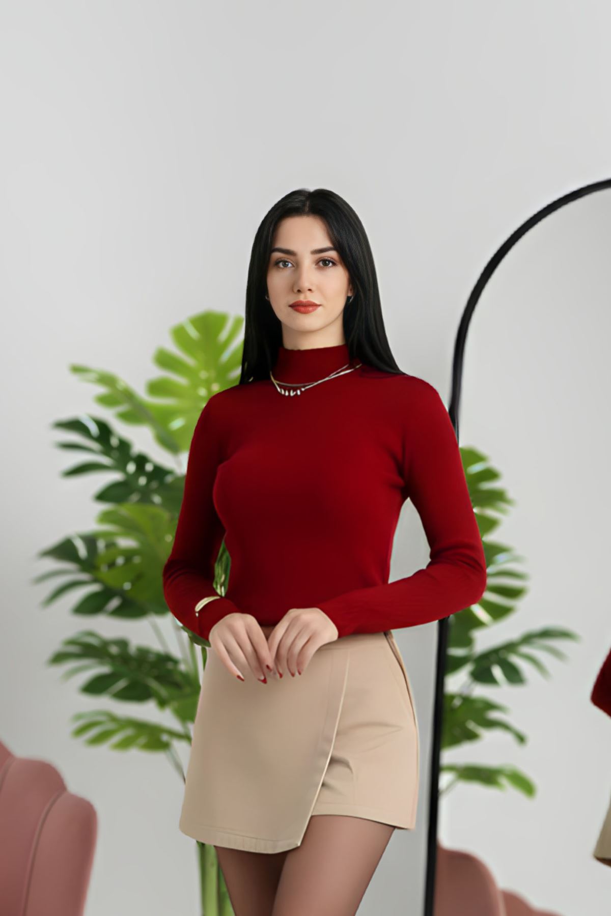 Akrilik Dik Yaka Triko Bordo - 31068.1766.