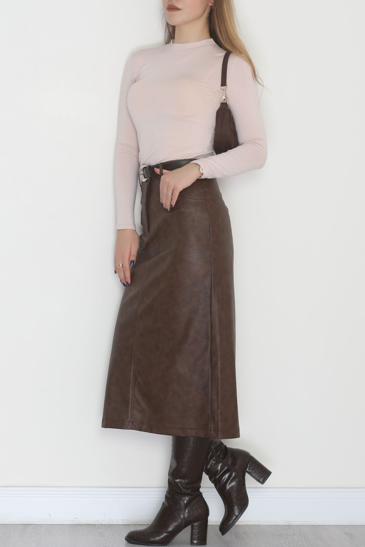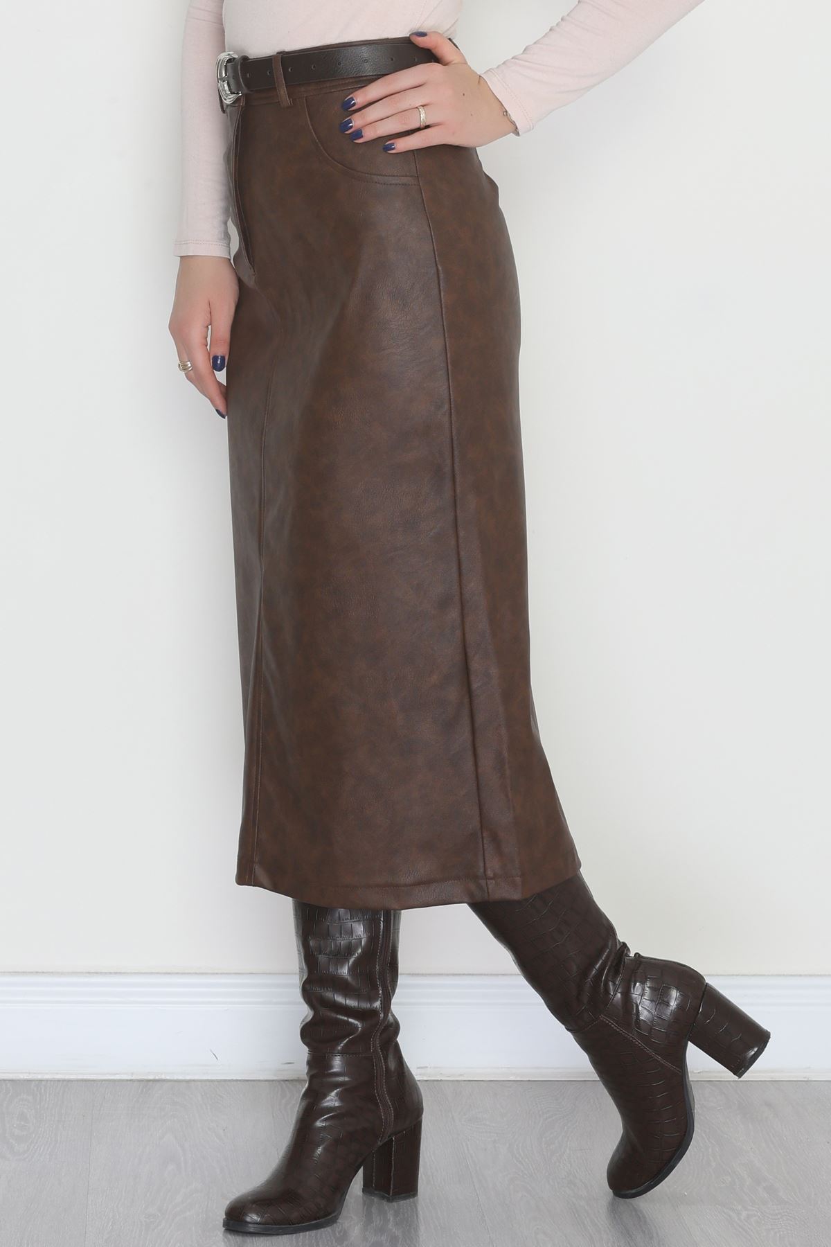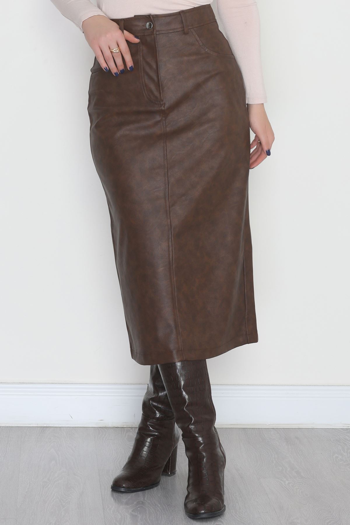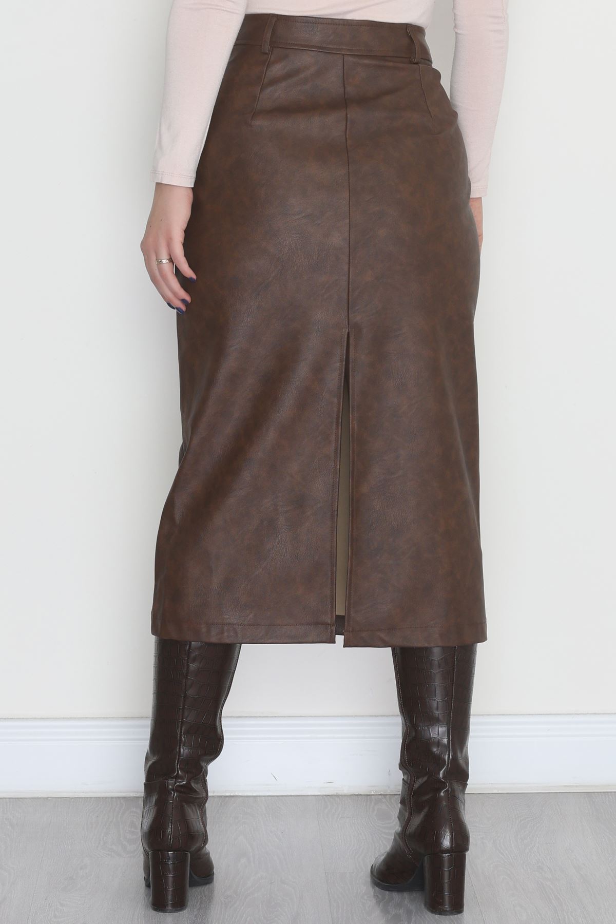 Yıkama Efektli Uzun Deri Etek Antikkahve - 40906.444.