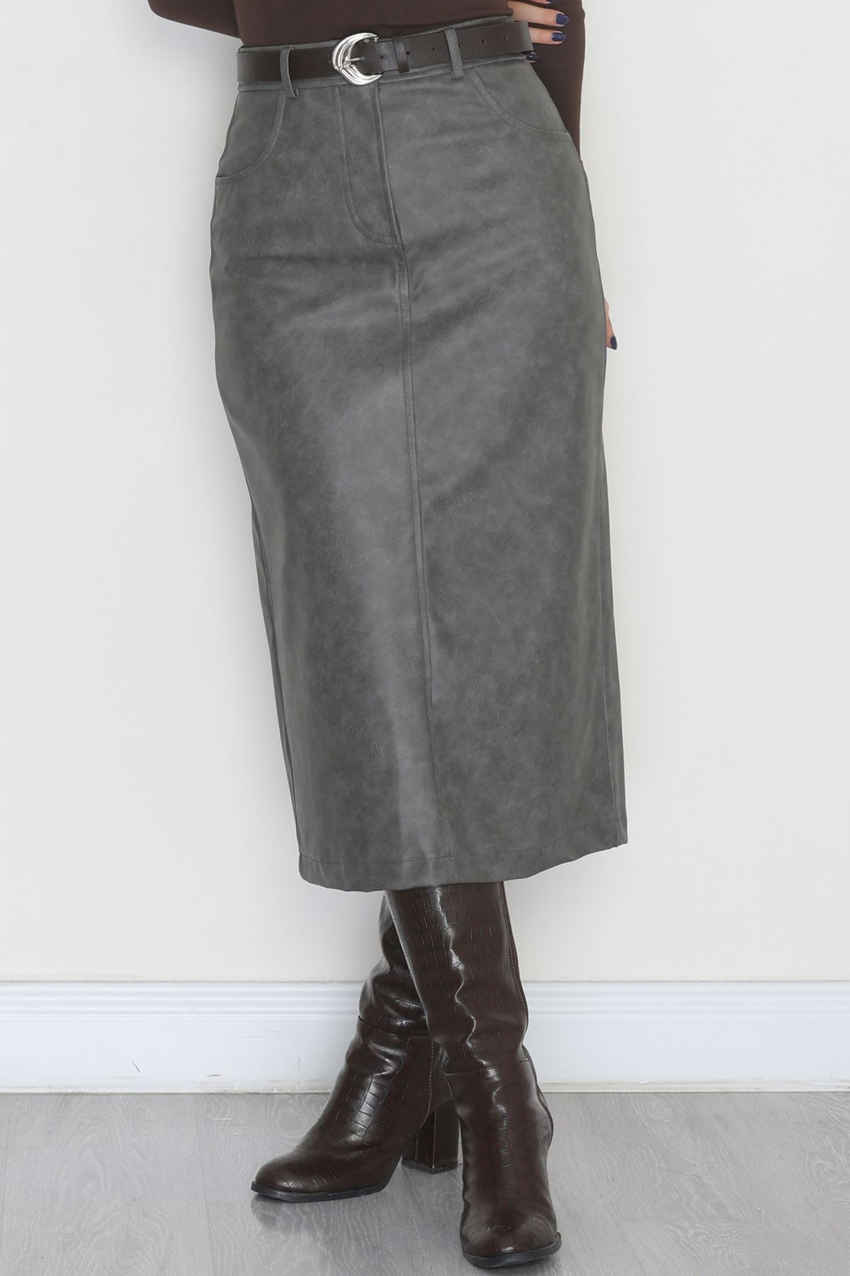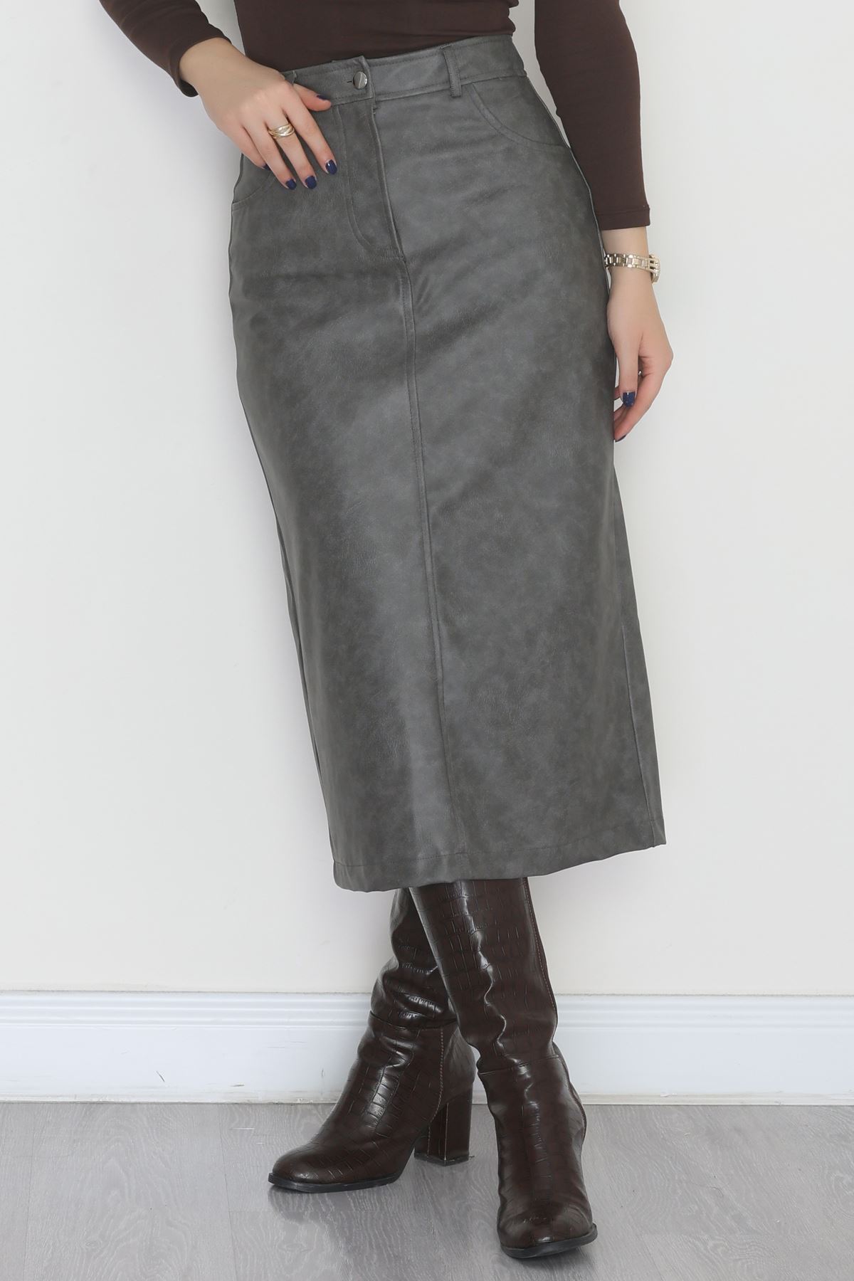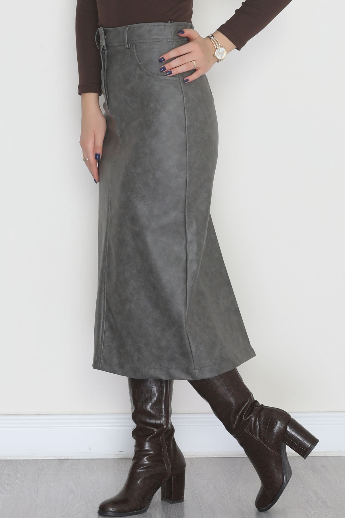 Yıkama Efektli Uzun Deri Etek Antrasit - 40906.444.