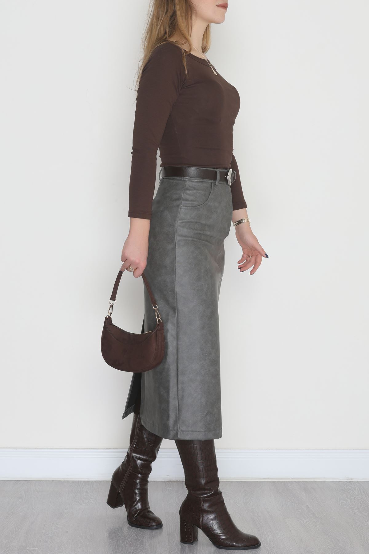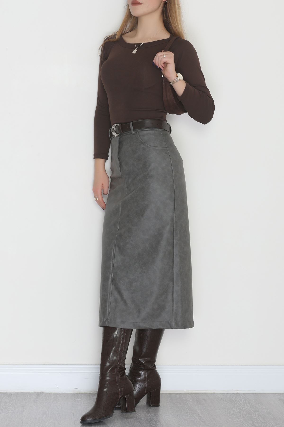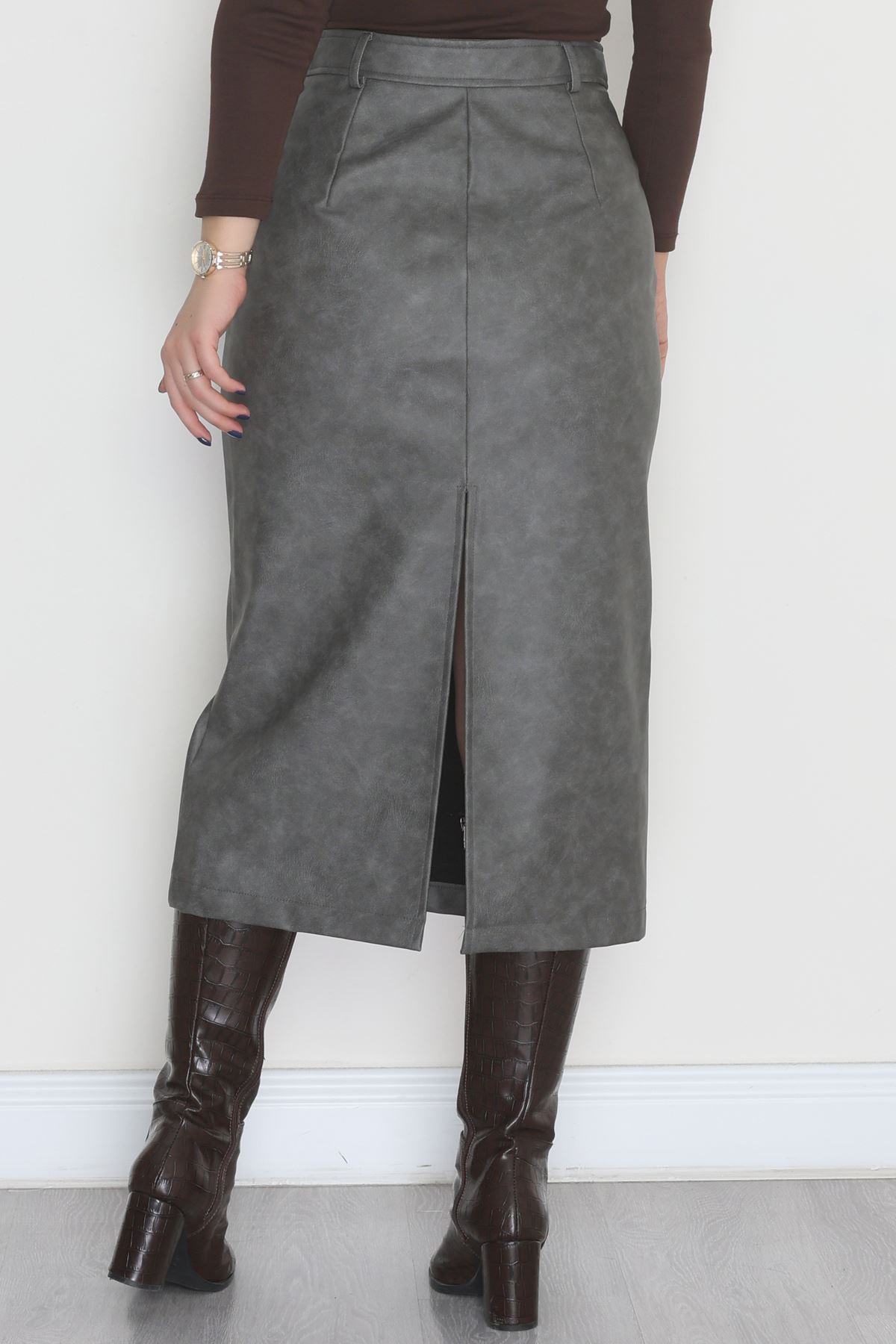 Yıkama Efektli Uzun Deri Etek Antrasit - 40906.444.