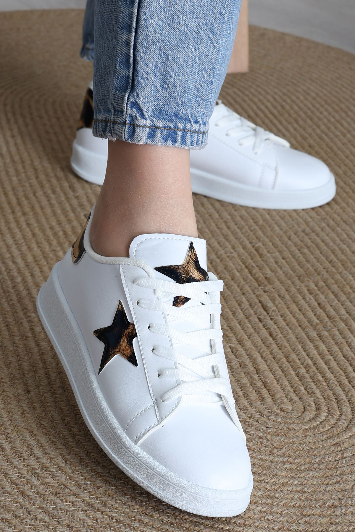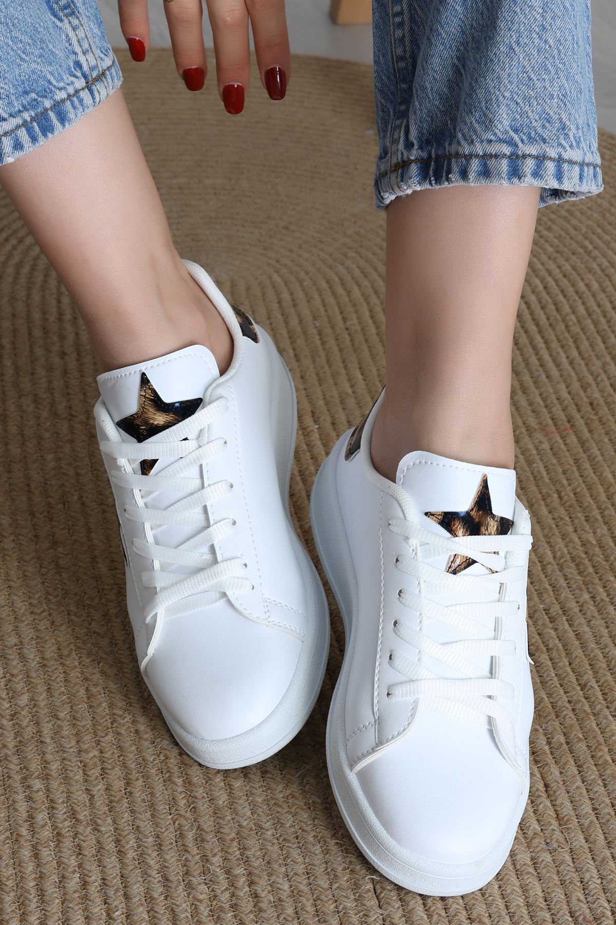 Yıldızlı Spor Ayakkabı Beyazleopar - 31295.264.