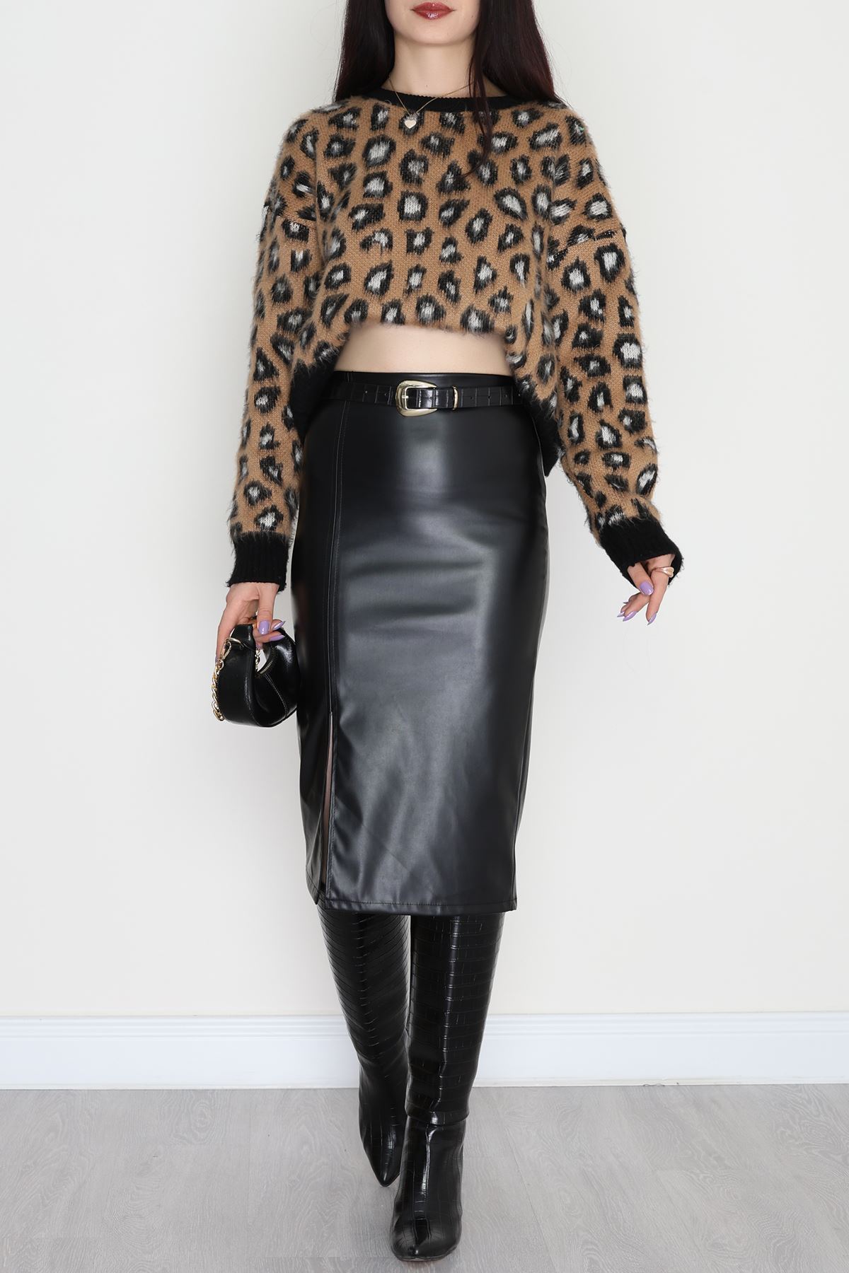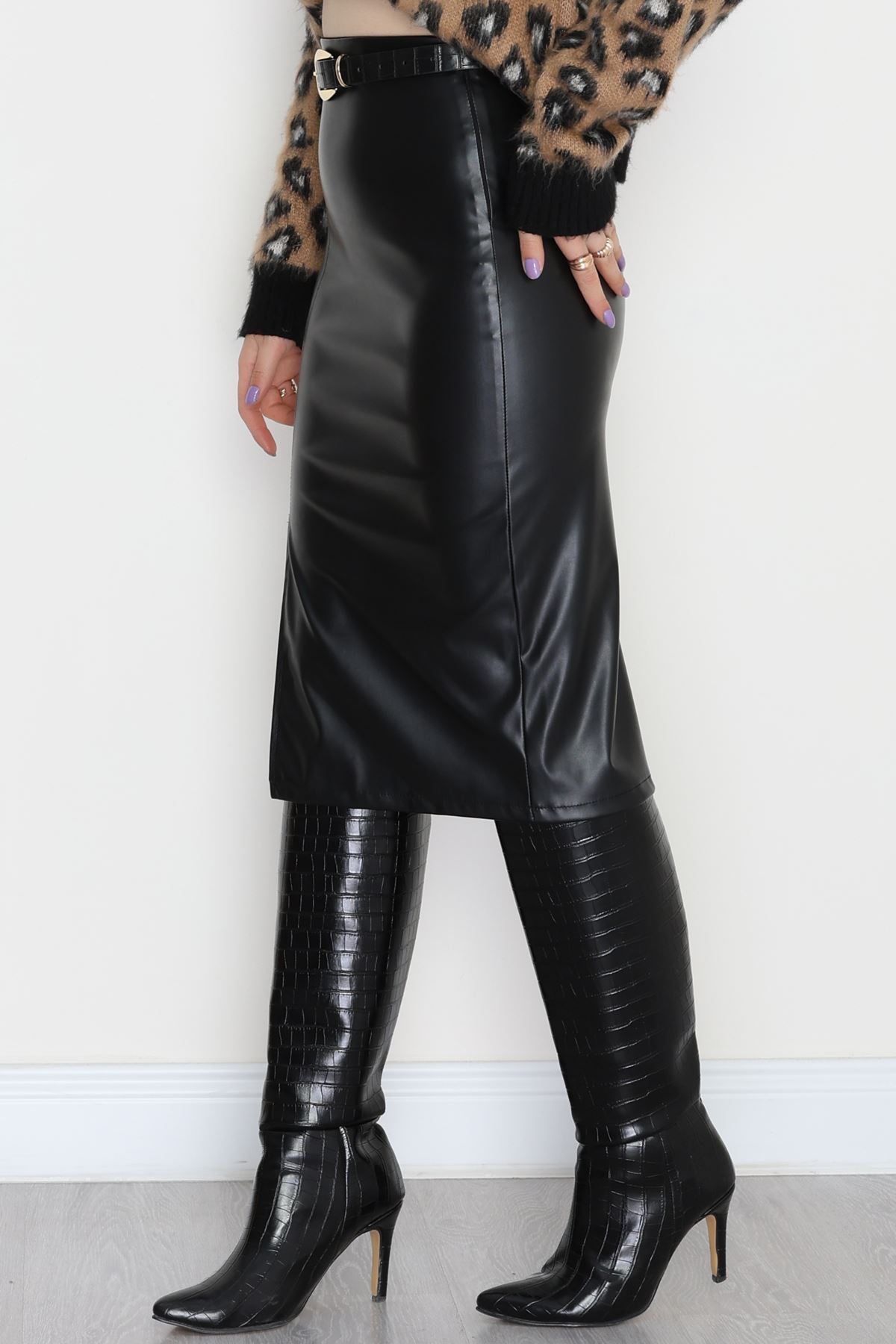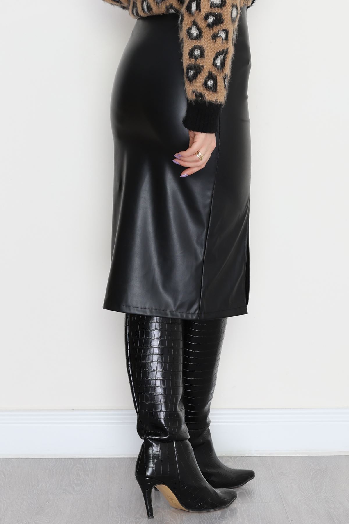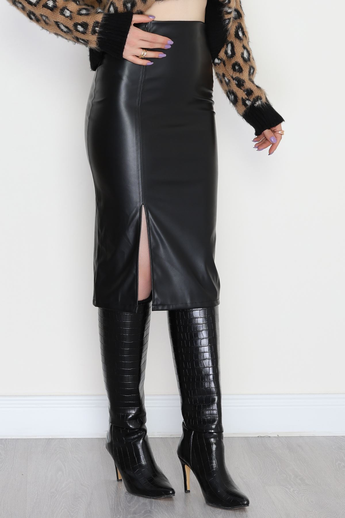 Yırtmaçlı Deri Kalem Etek Siyah - 51018.1779.