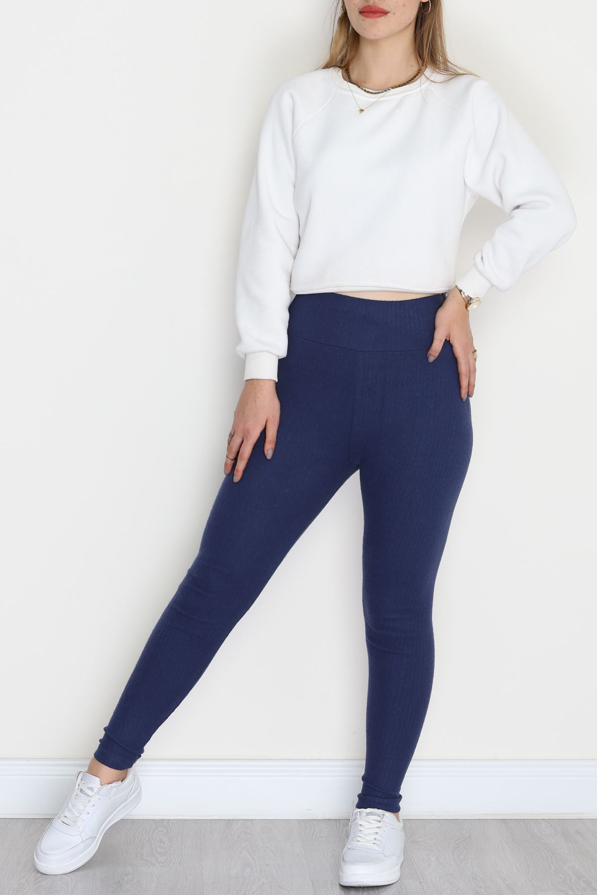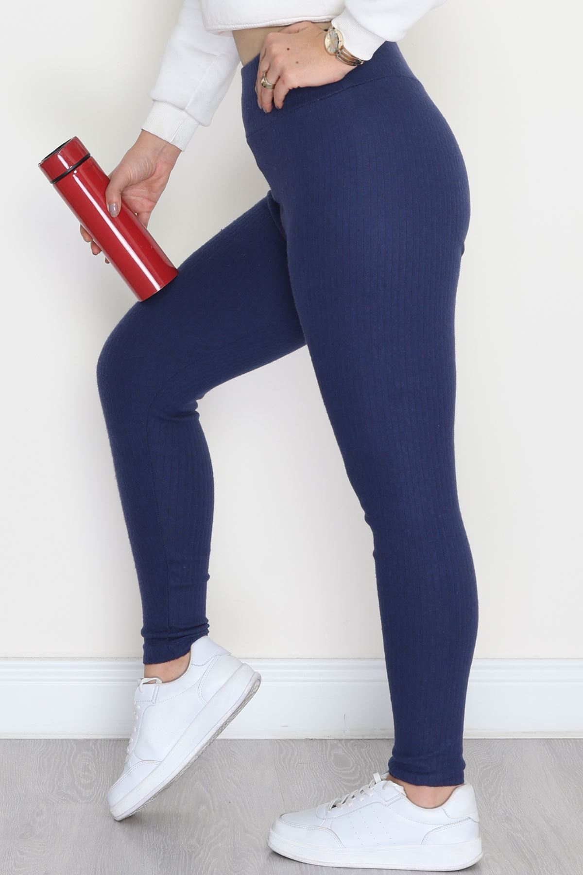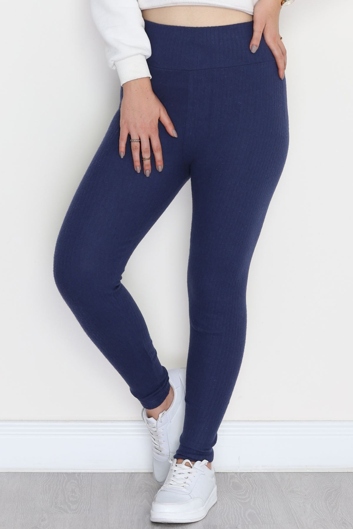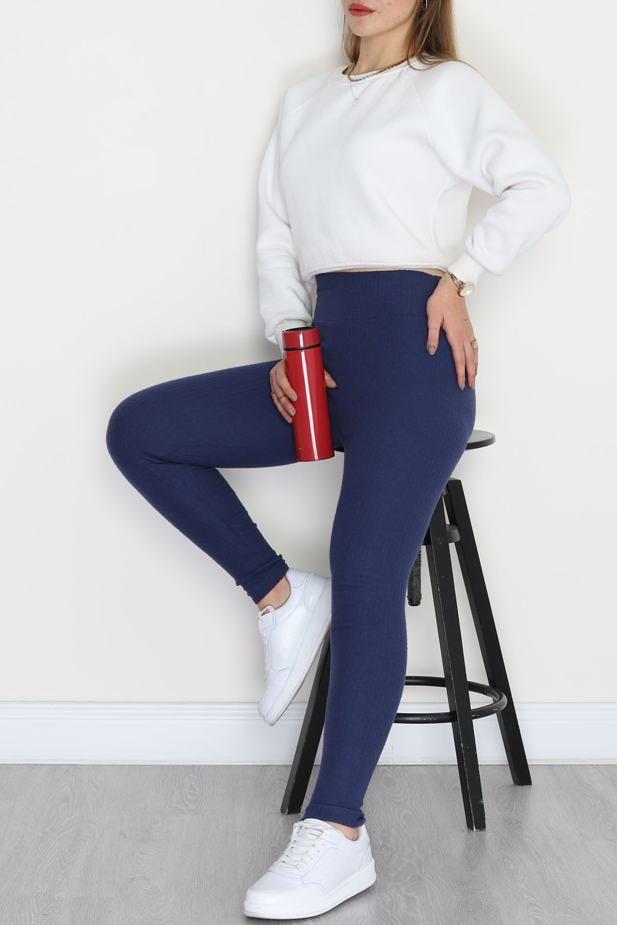 Yüksek Bel Raporlu Kumaş Tayt Lacivert - 52000.1567.