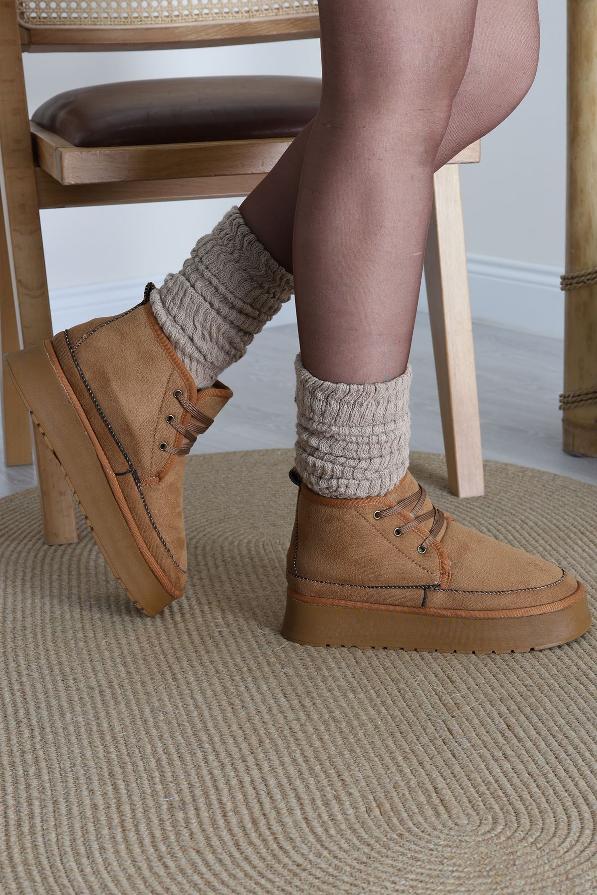 Kalın Taban Mini Boy Süet Bot Taba - 31437.1932.