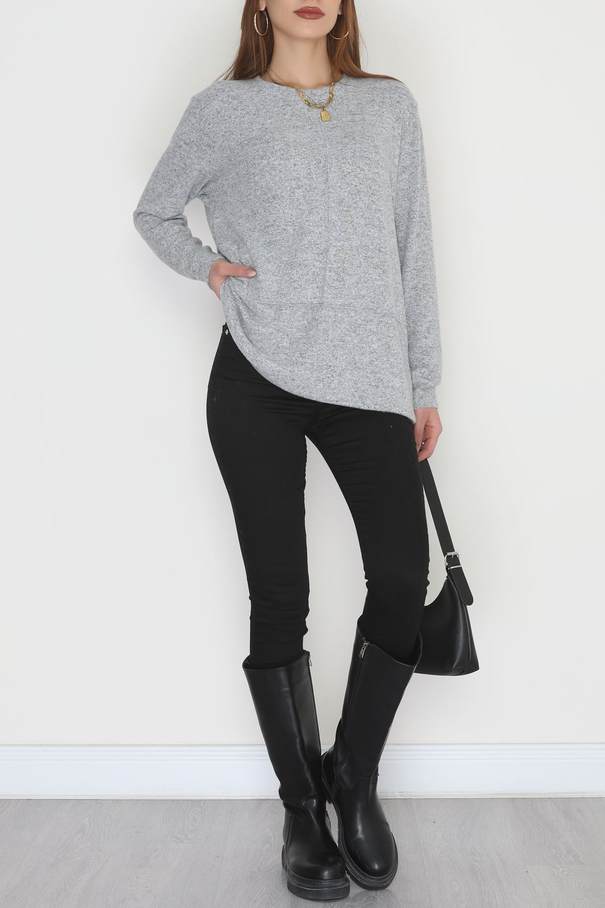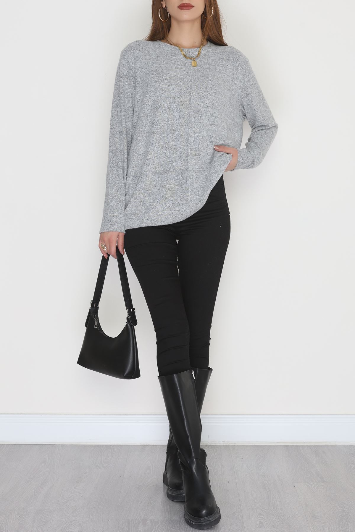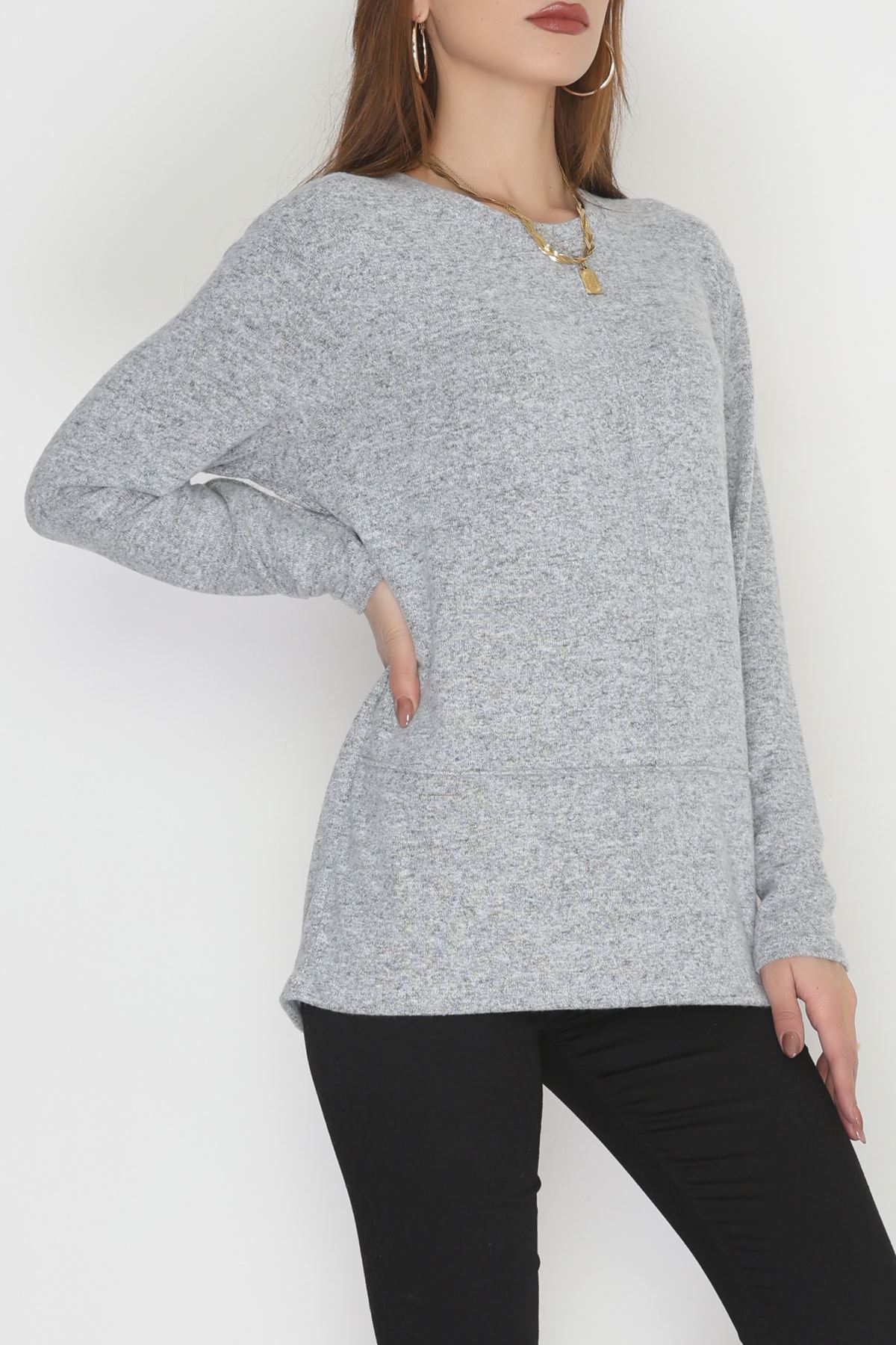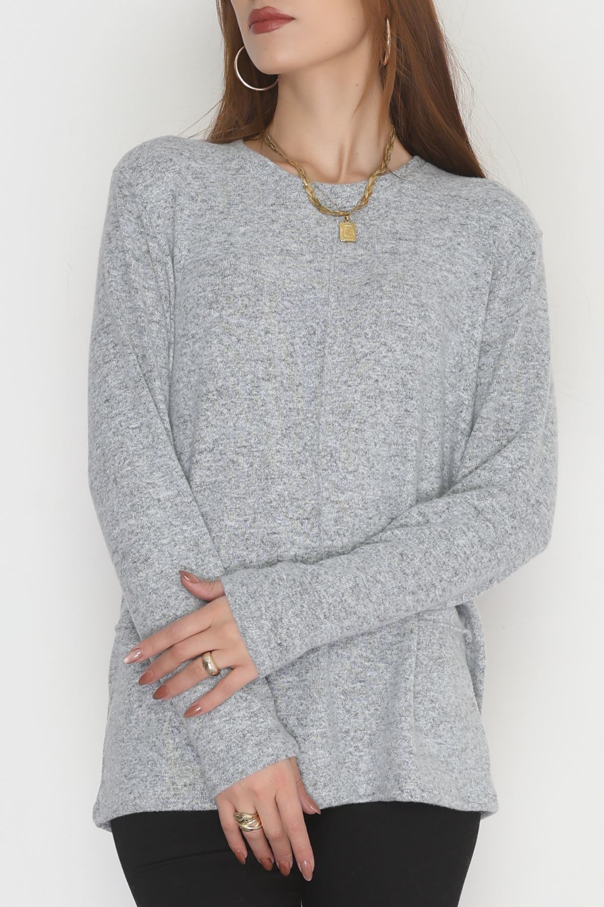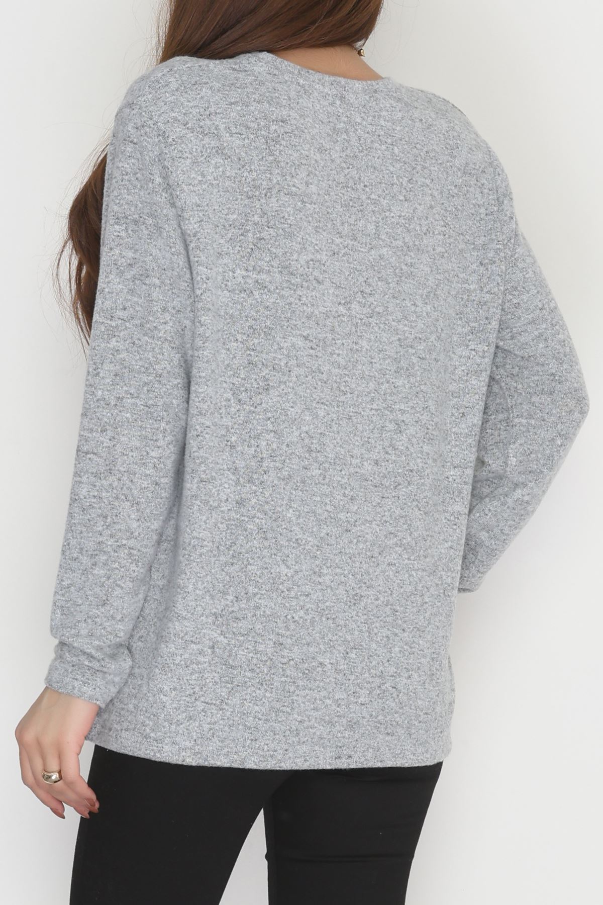 Yün Çilek Büyük Beden Bluz Gri - 51065.2114.