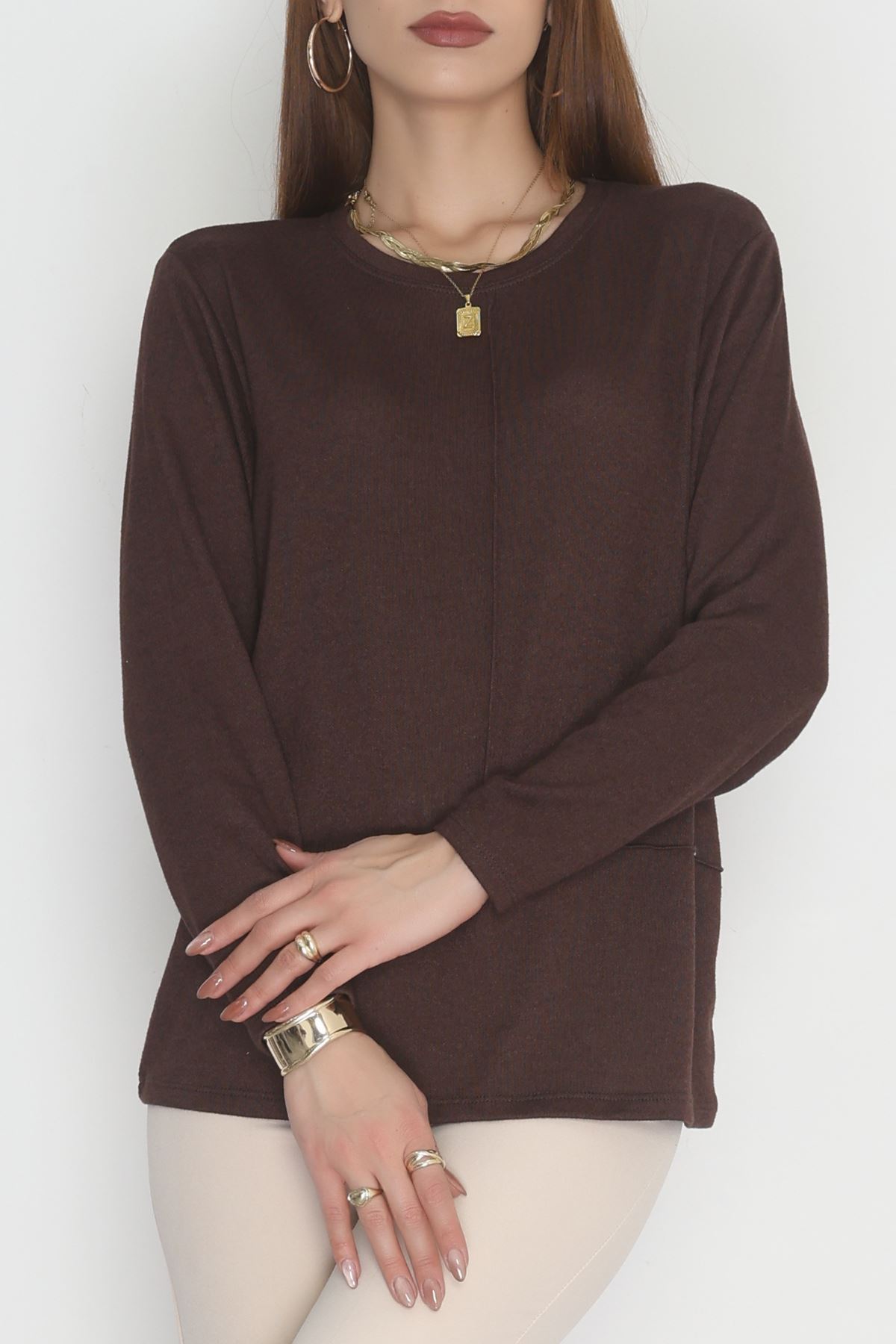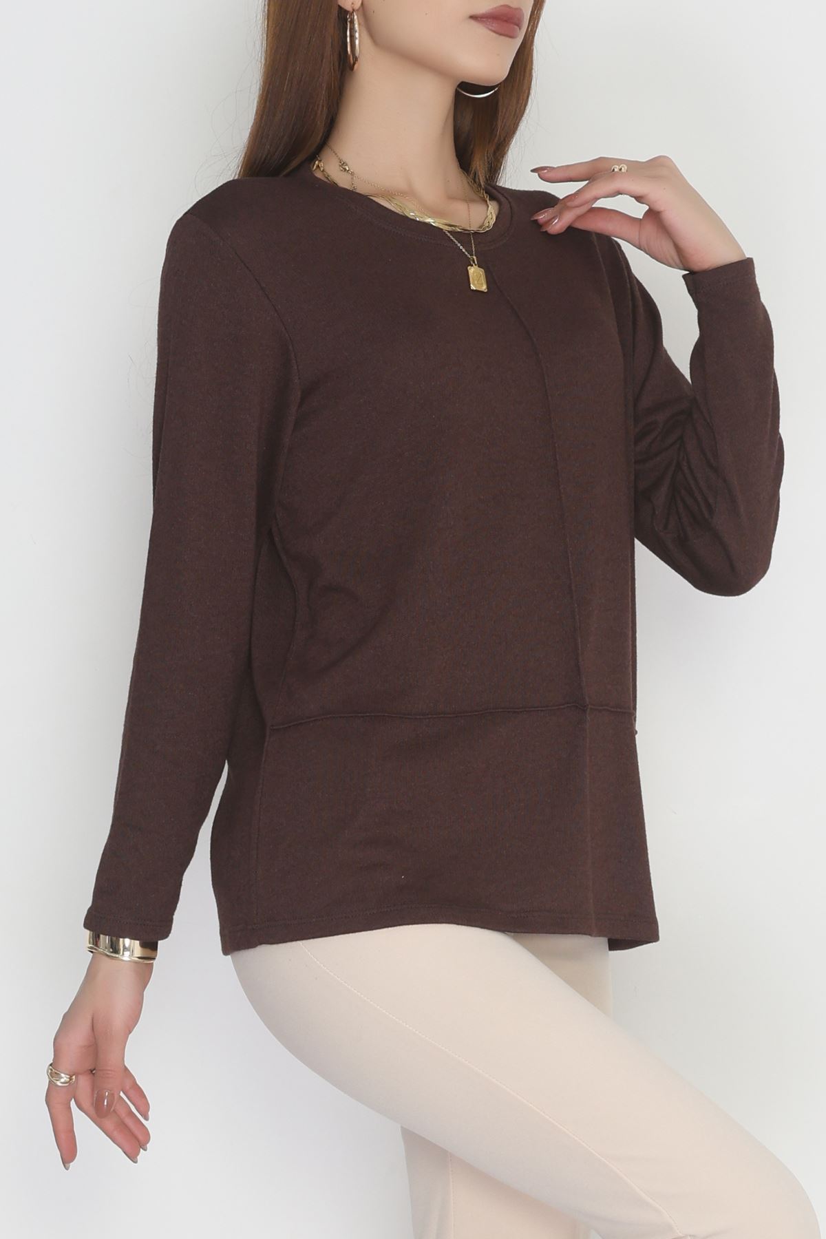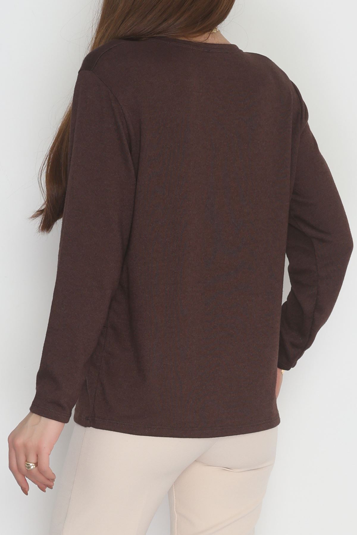 Yün Çilek Büyük Beden Bluz Kahve - 51065.2114.