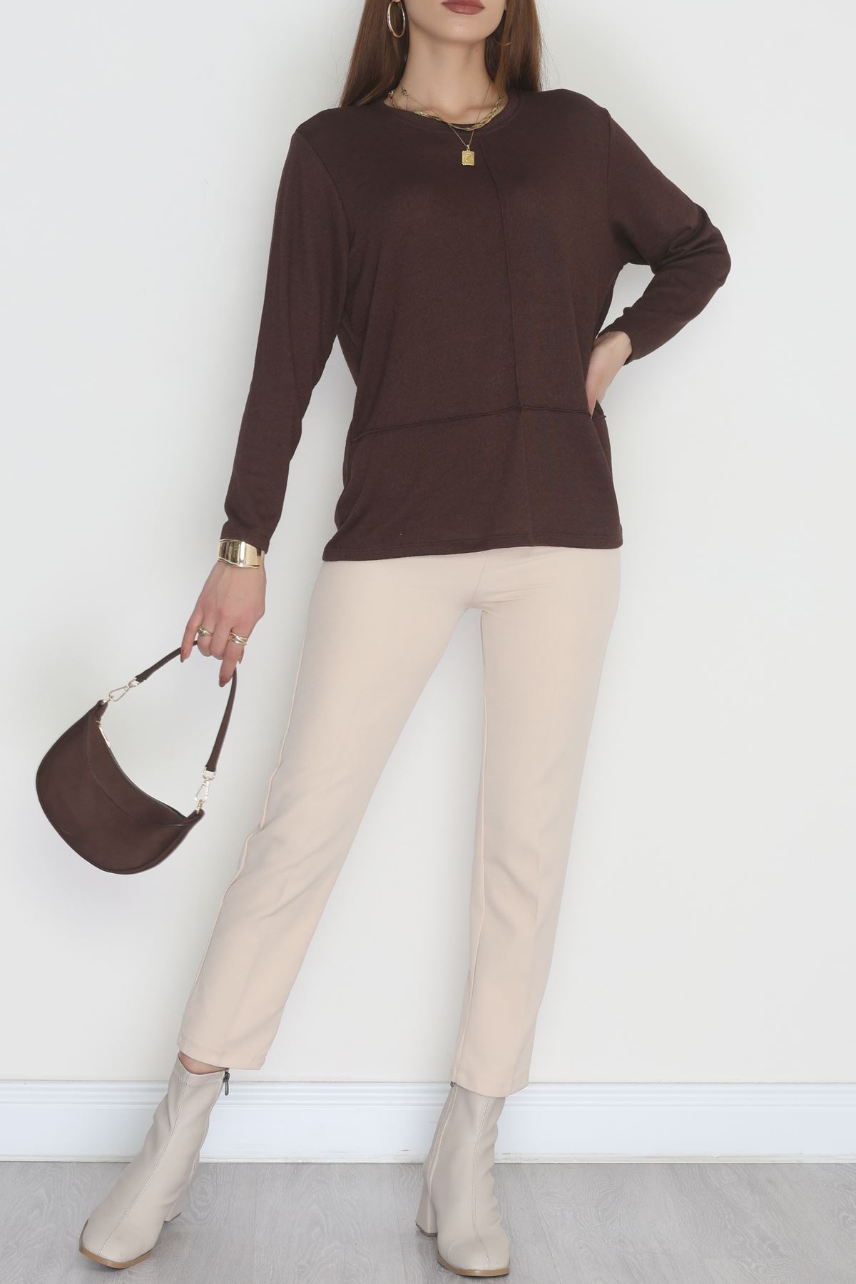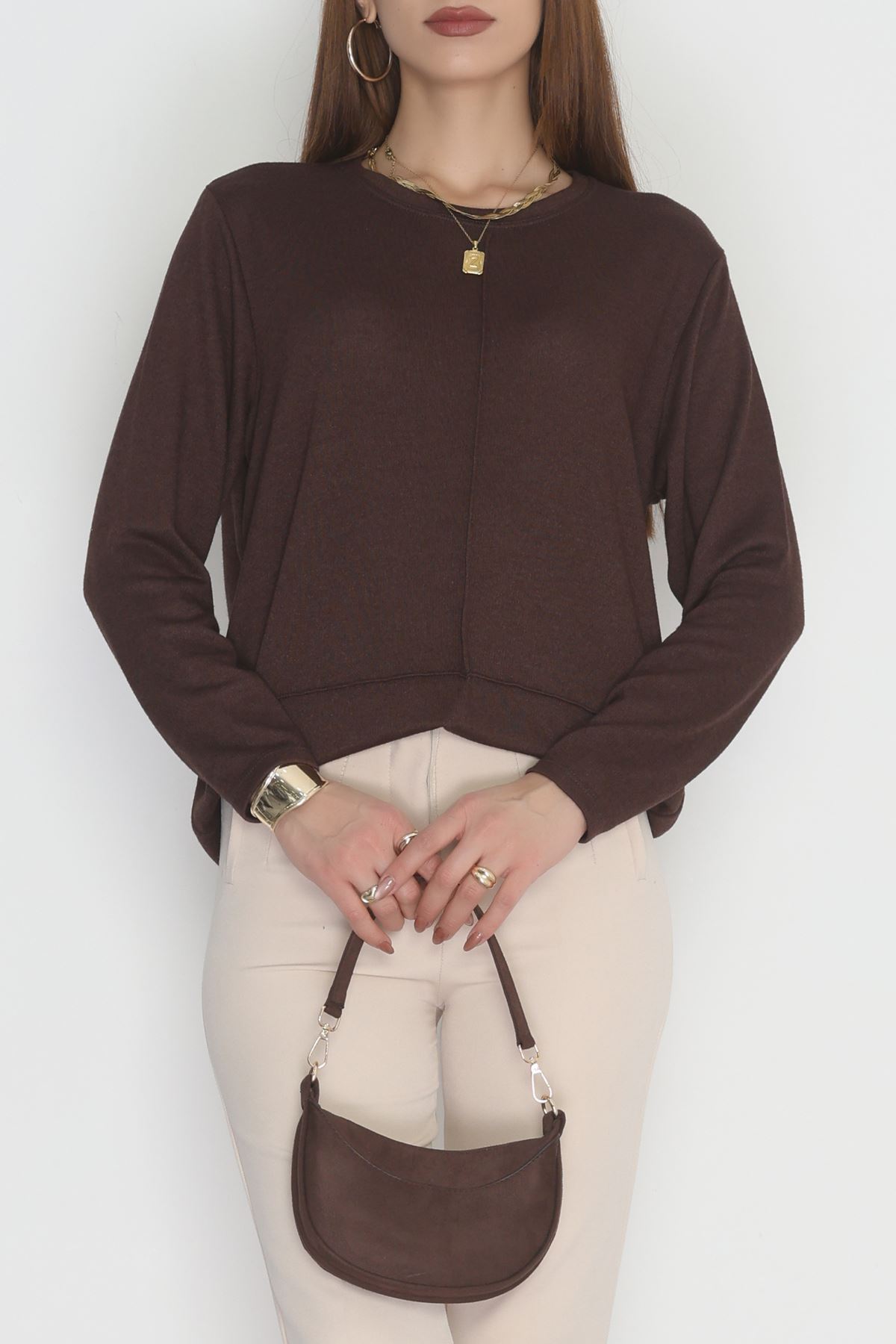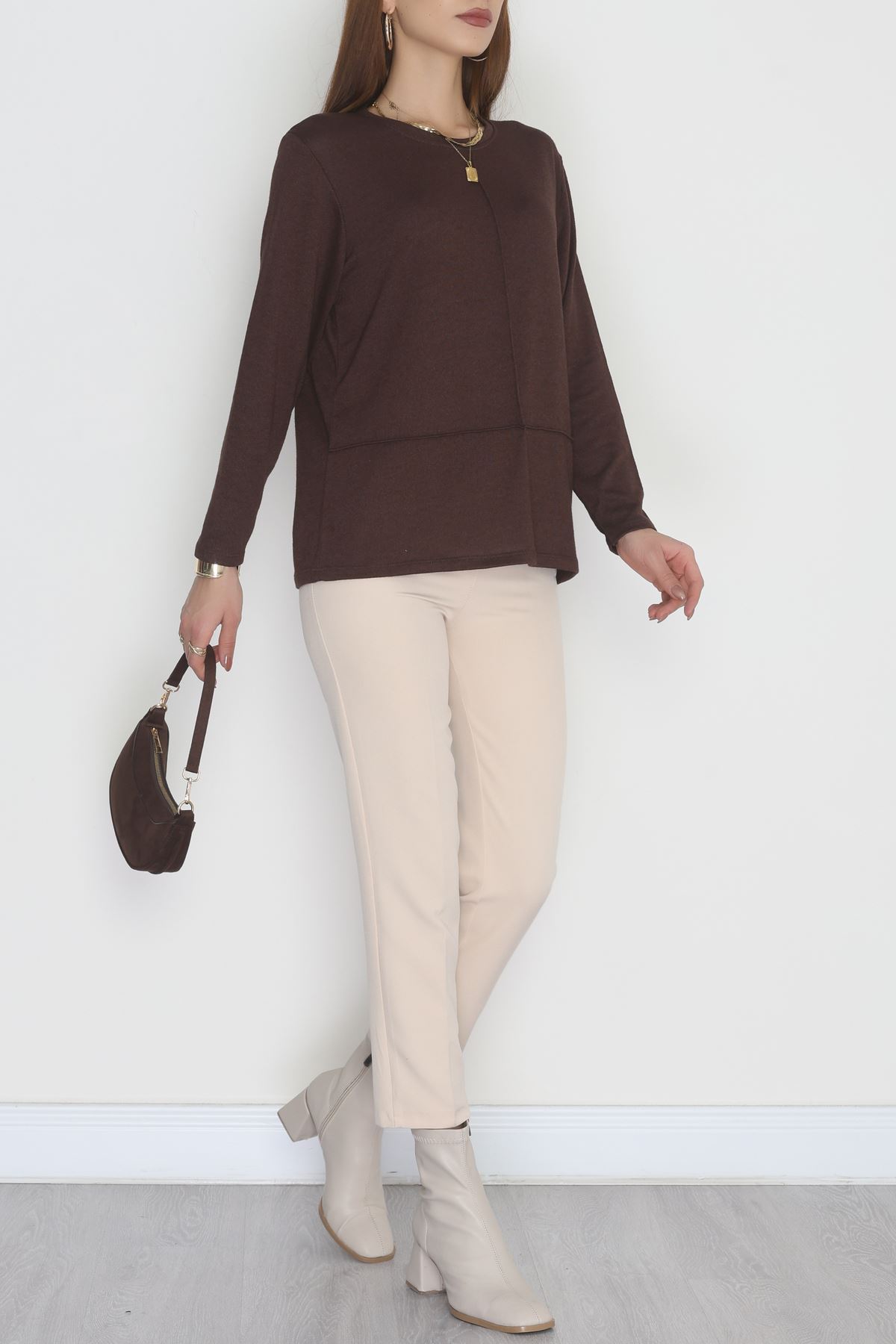 Yün Çilek Büyük Beden Bluz Kahve - 51065.2114.