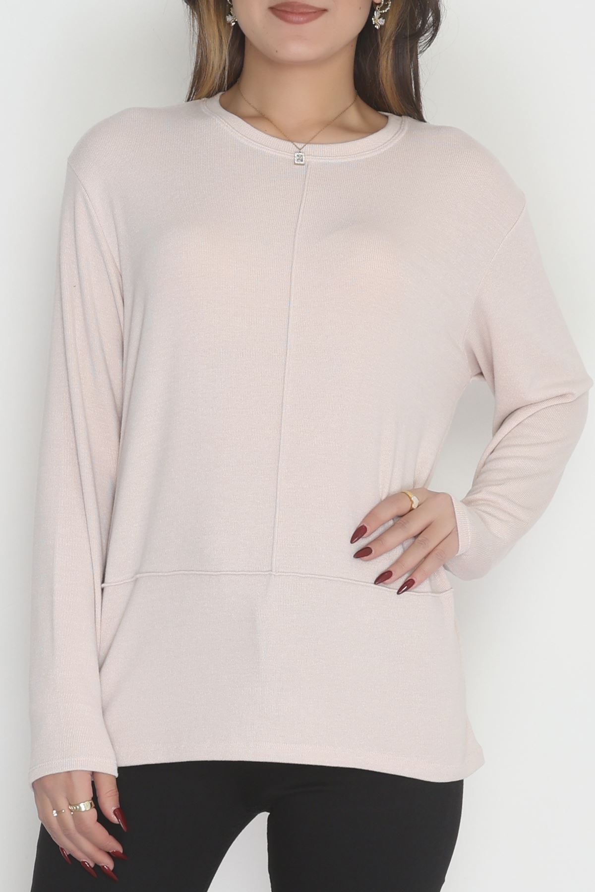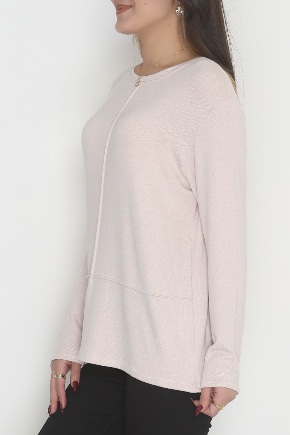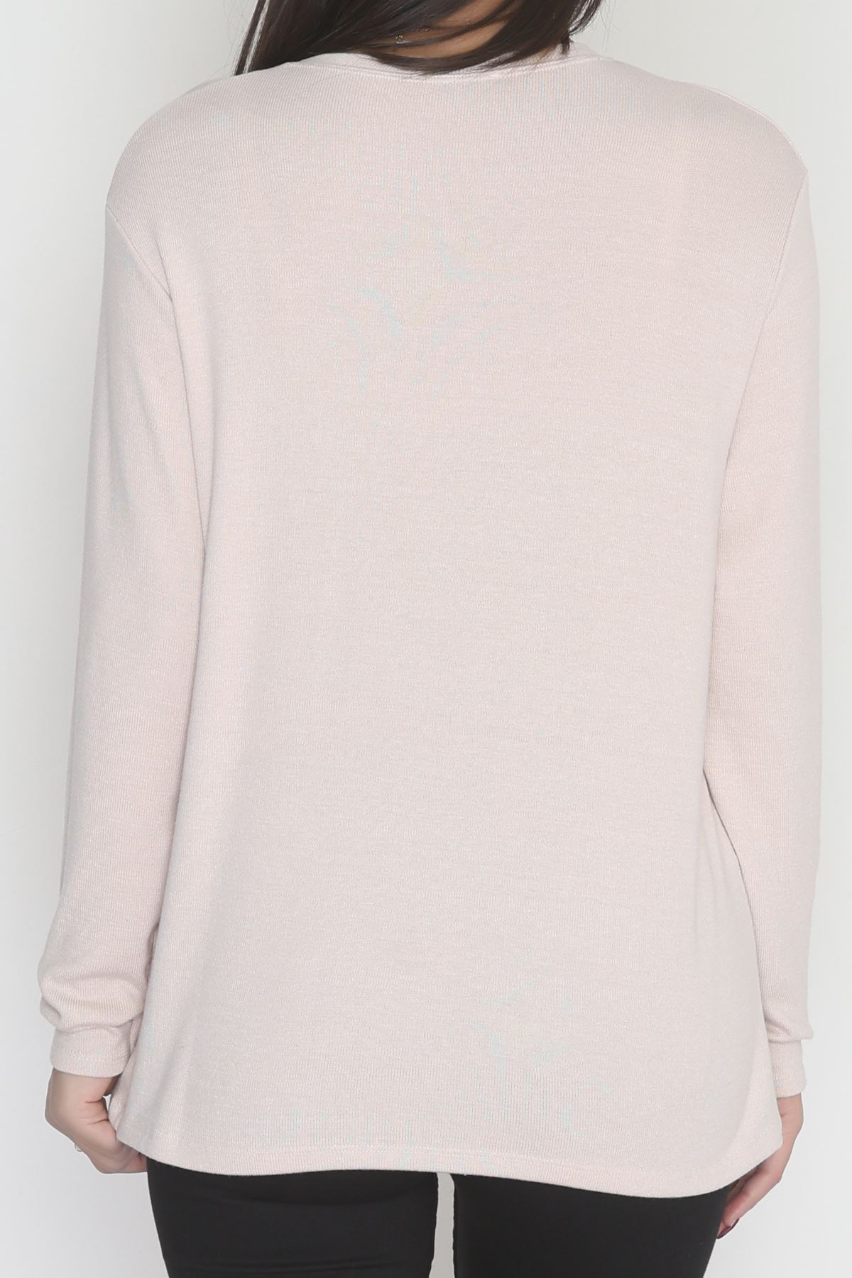 Yün Çilek Büyük Beden Bluz Pudra - 51065.2114.