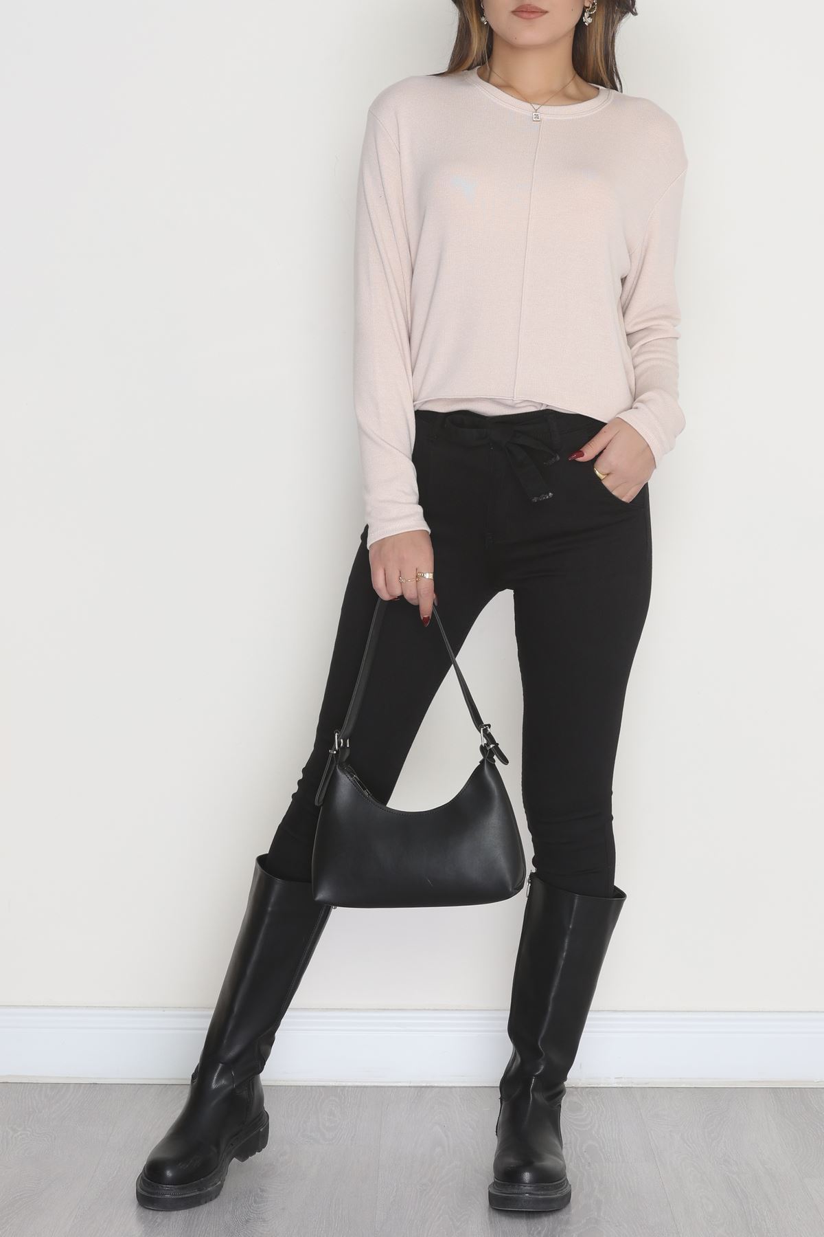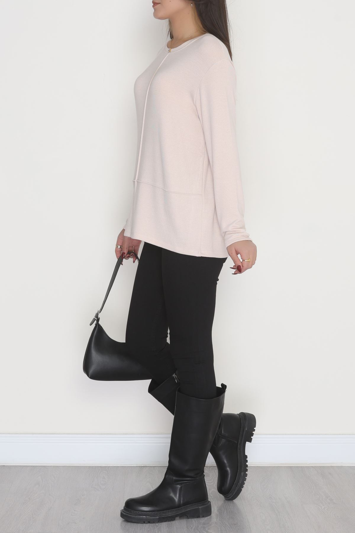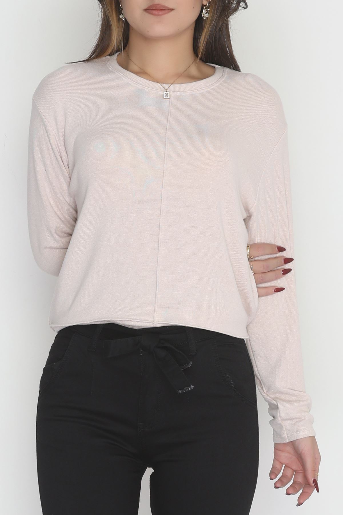 Yün Çilek Büyük Beden Bluz Pudra - 51065.2114.