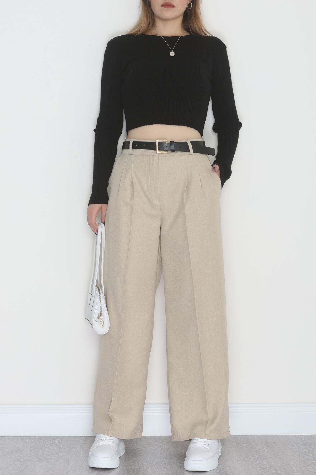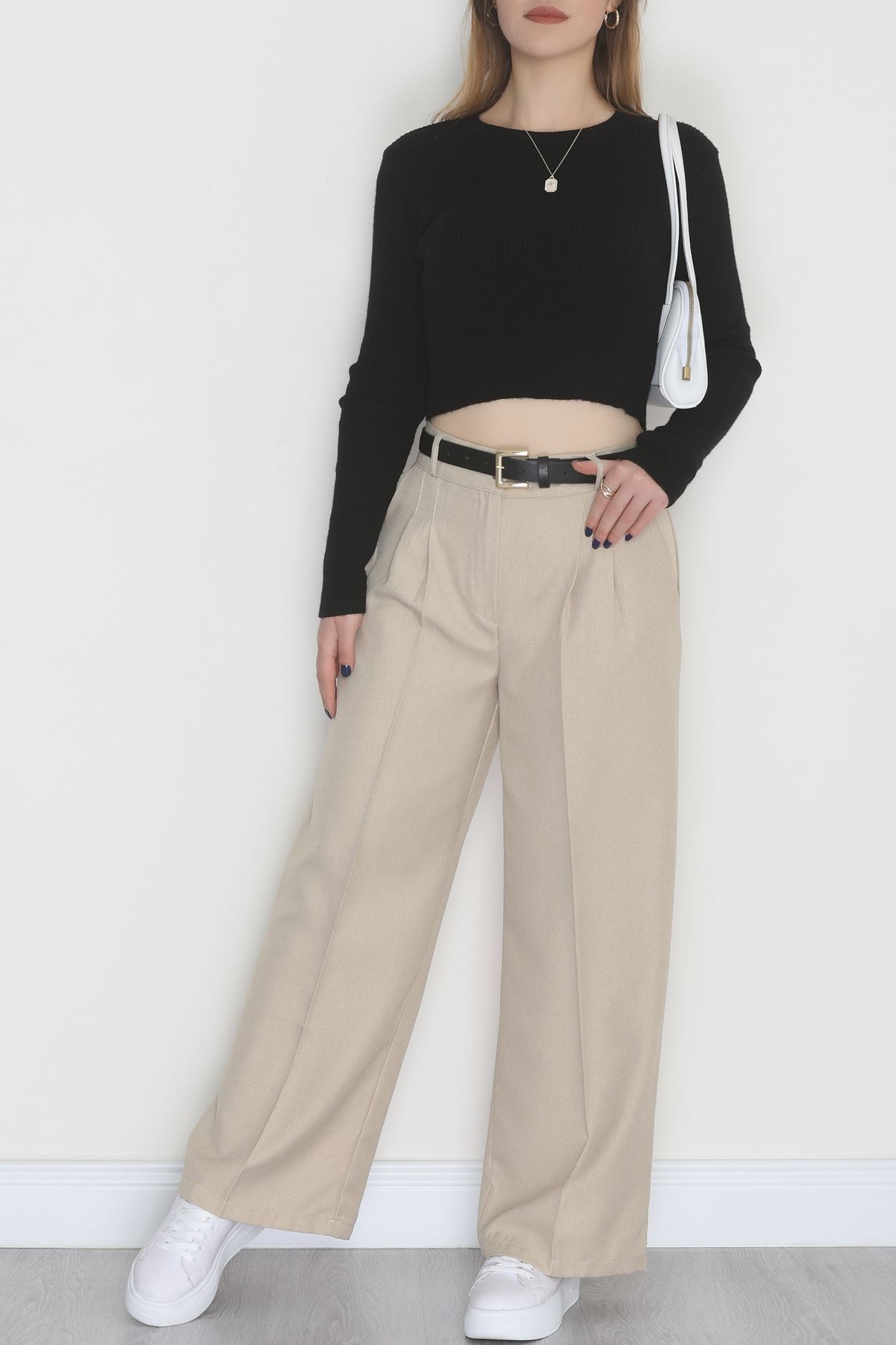 Yün Efekt Palazzo Pantolon Taş - 51037.2061.