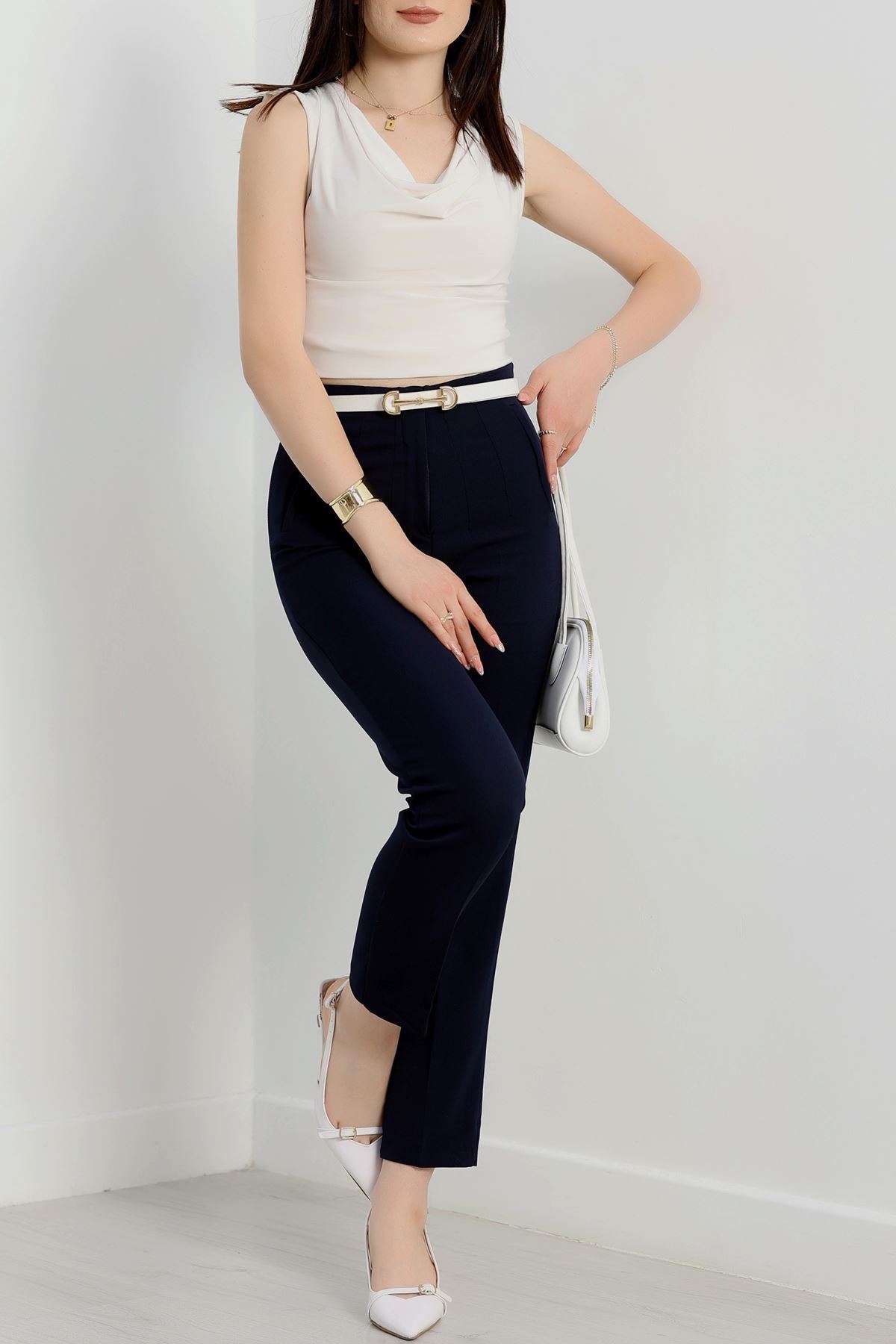 Kemerli Kumaş Pantolon Lacivert - 20369.1397.