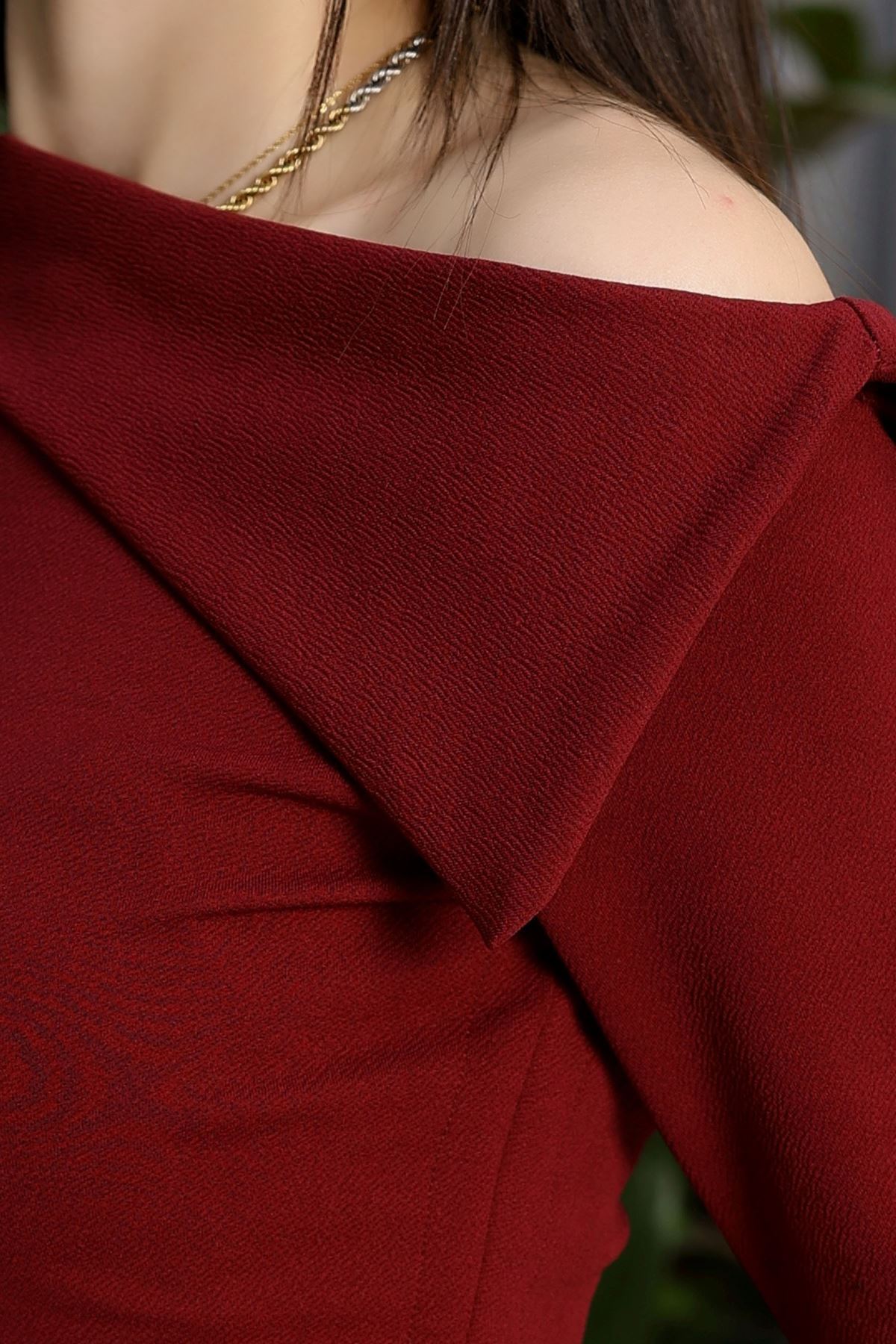 Zra Krep Kayık Yaka Drapeli Bluz Bordo - 70771.1918.