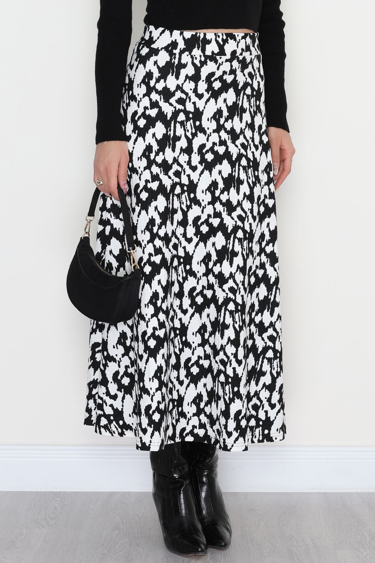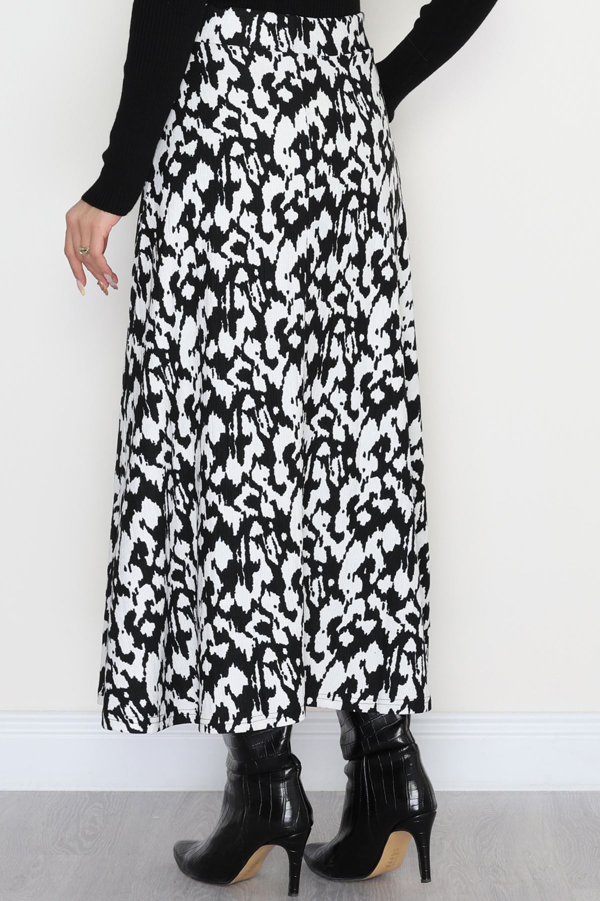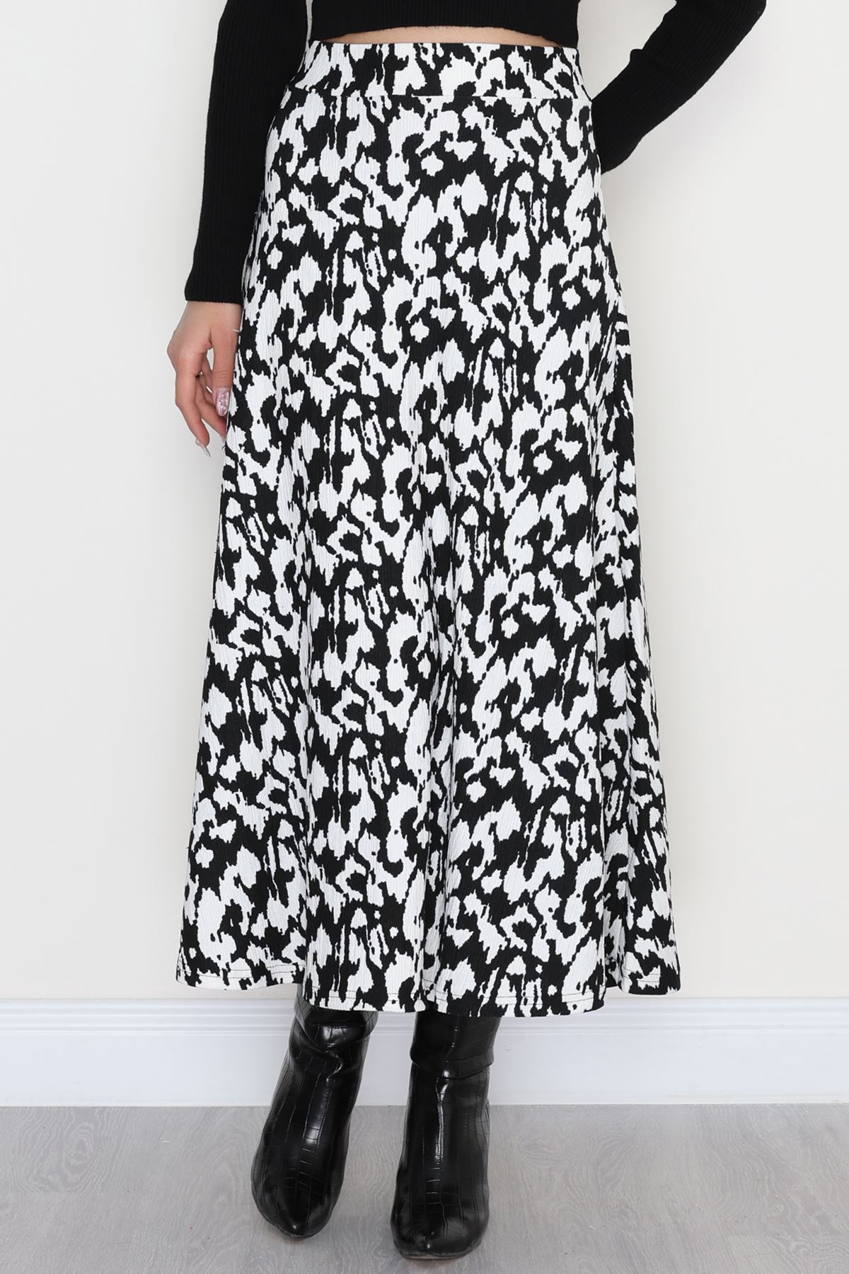 Zra Krep Kloş Etek Beyazsiyah - 50905.1355.