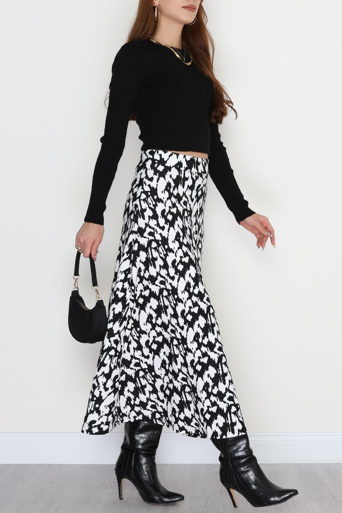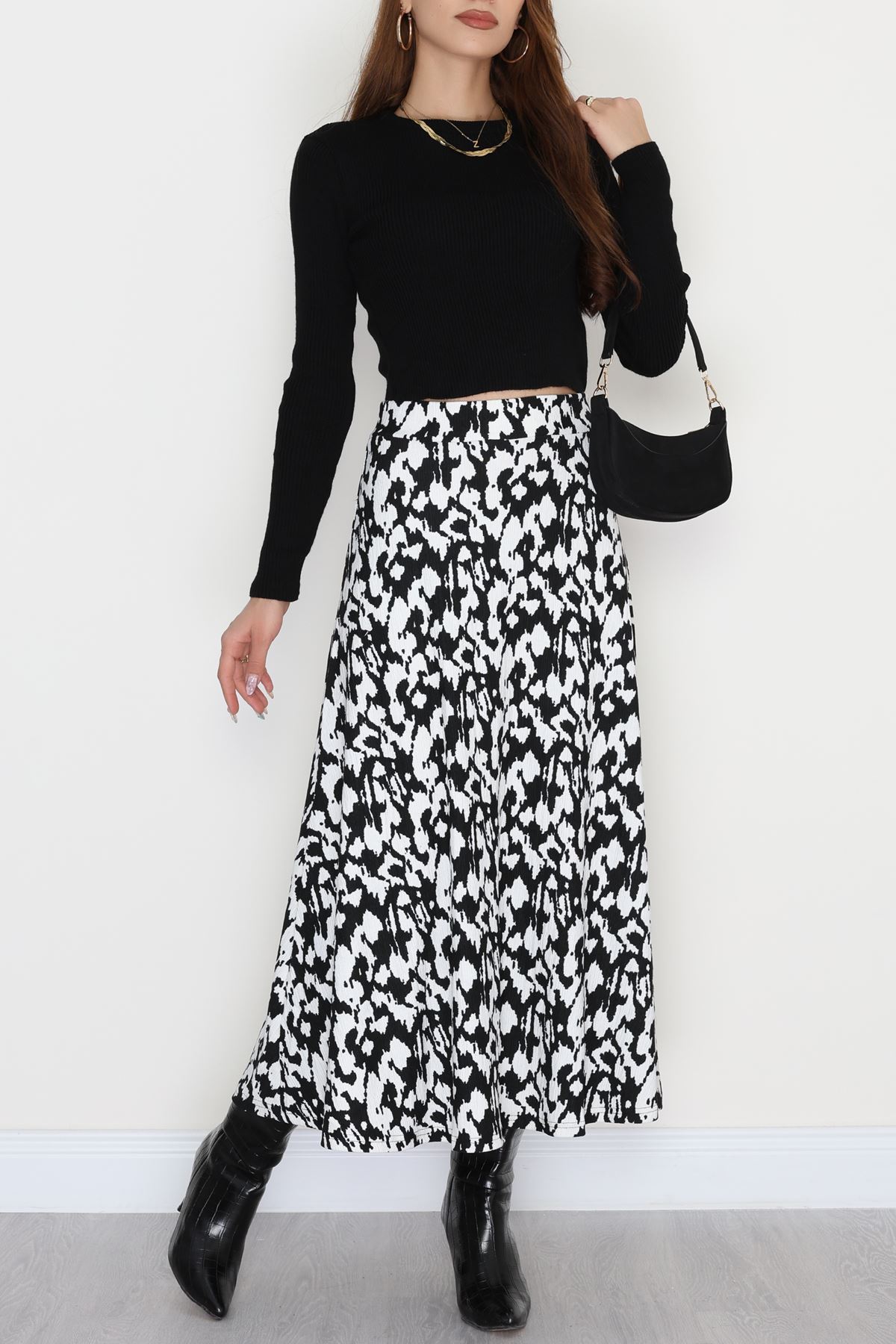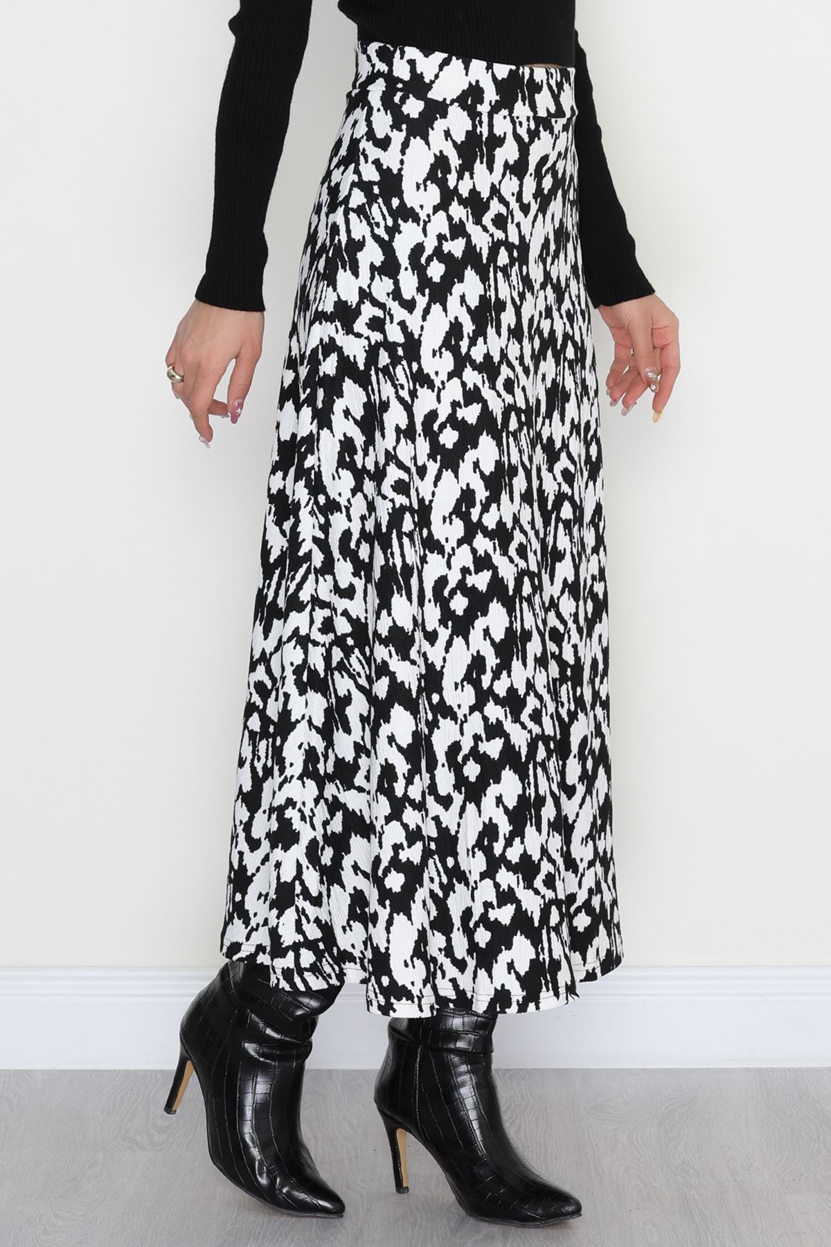 Zra Krep Kloş Etek Beyazsiyah - 50905.1355.